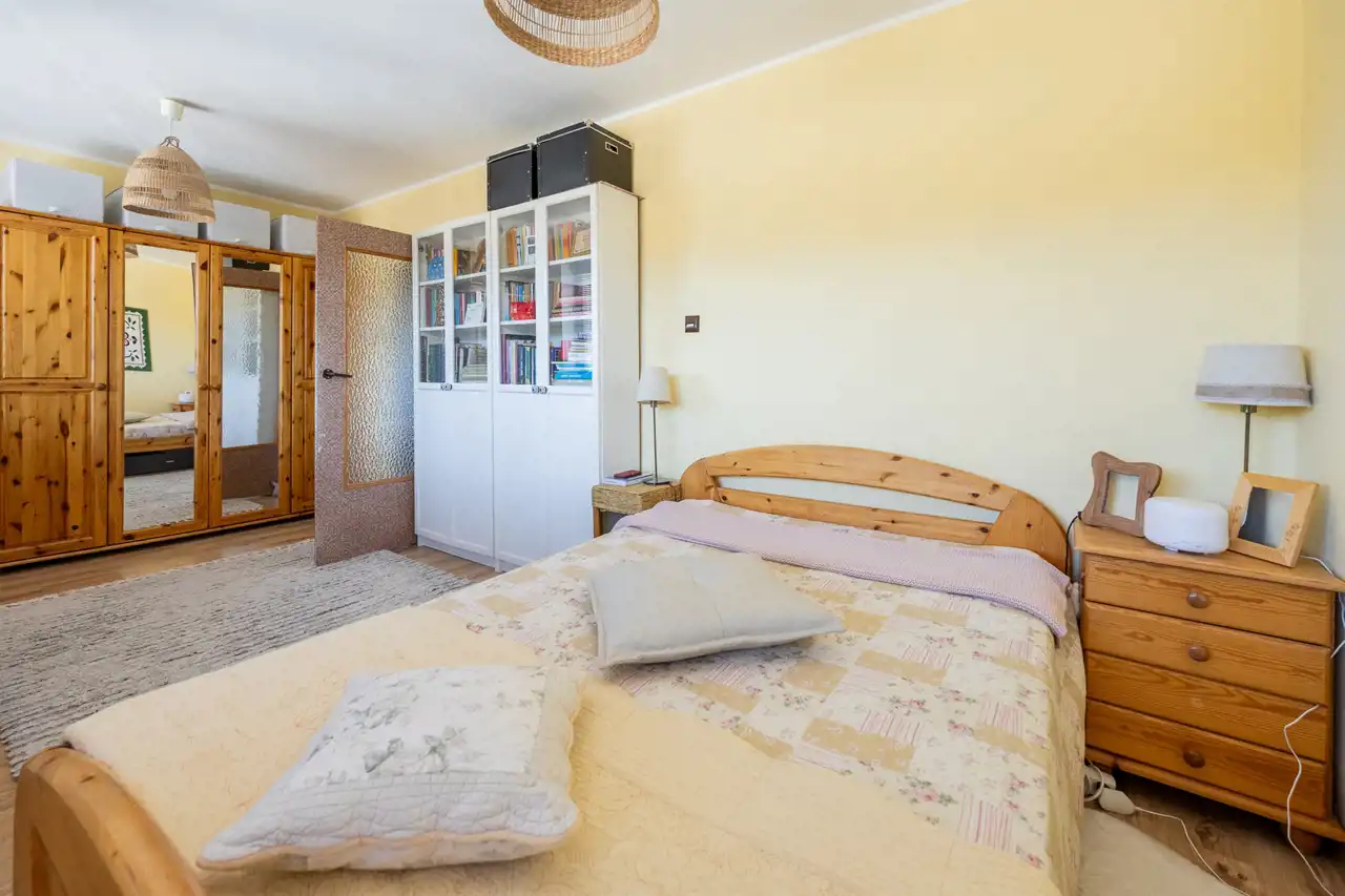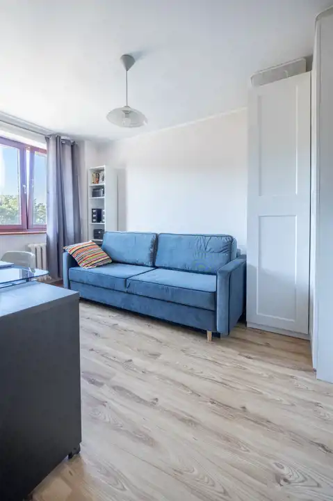 Strefa relaksu – pierwotnie mieszkanie składało się z 4 pokoi. Obecnie dwa z nich zostały połączone w dużą sypialnię z dwoma oknami. Istnieje możliwość łatwego przywrócenia układu 4-pokojowego.