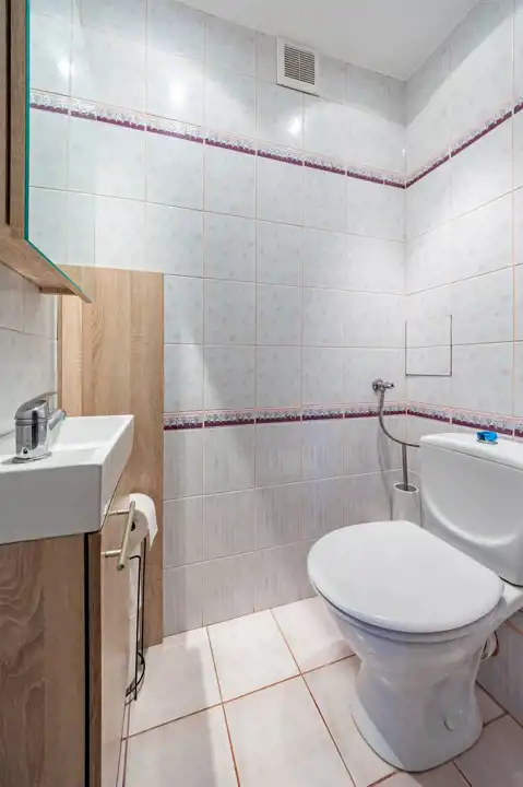 Komfort poranków – osobna łazienka z wanną oraz oddzielna toaleta, co znacząco podnosi wygodę codziennego życia.