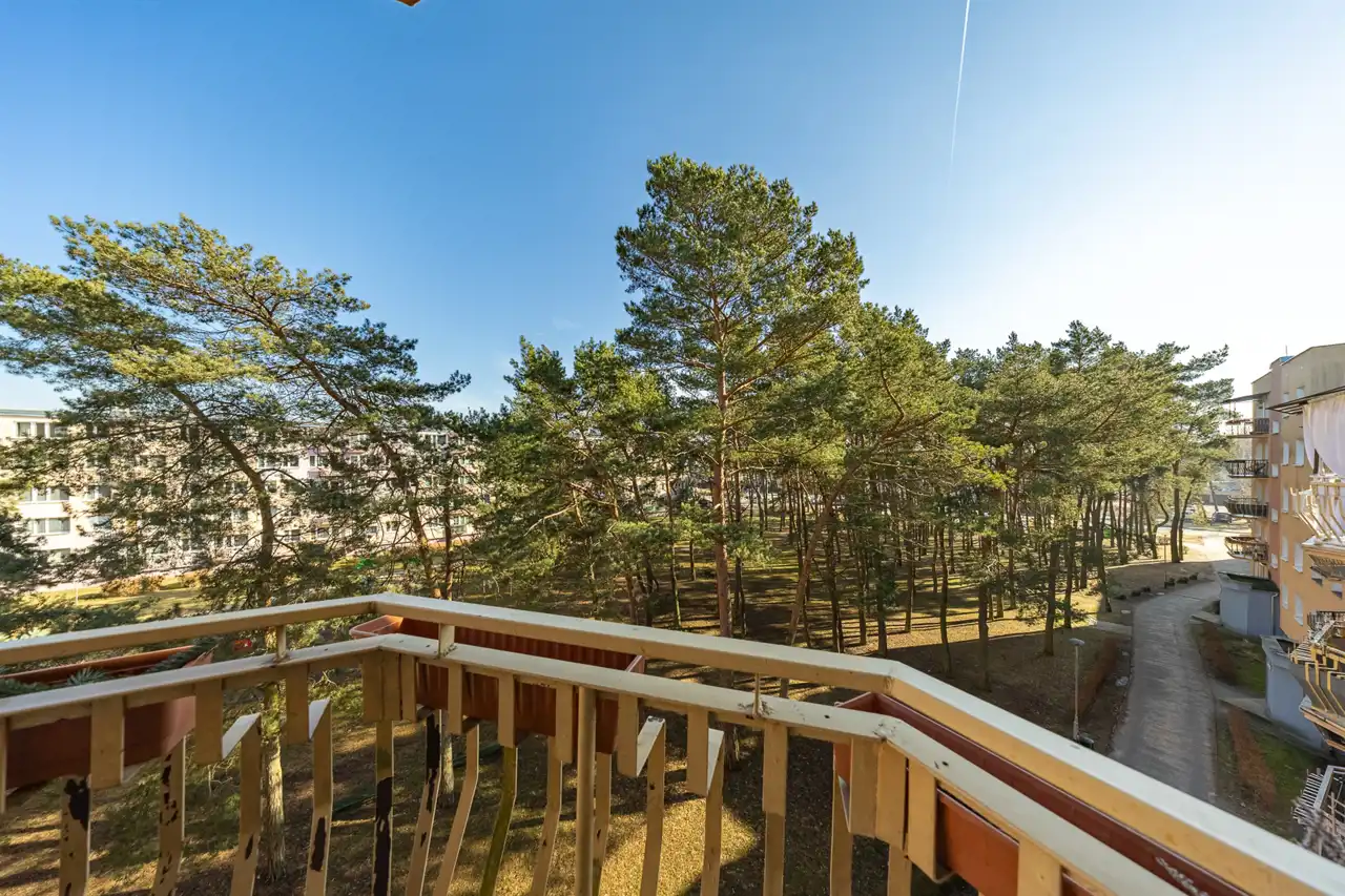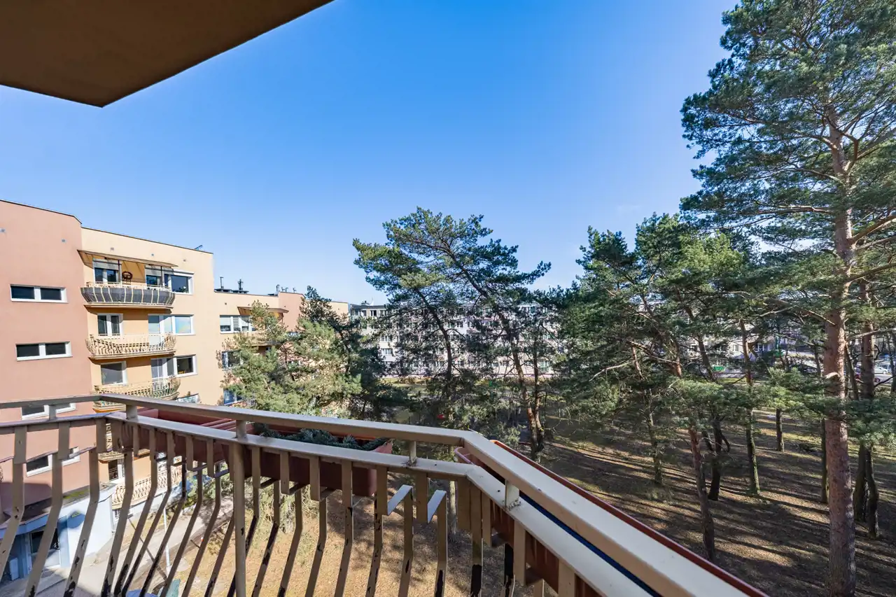 Widok, który daje wolność – z okien oraz dużego balkonu rozpościera się widok na korony drzew, zamiast na okna sąsiadów – to rzadki luksus.