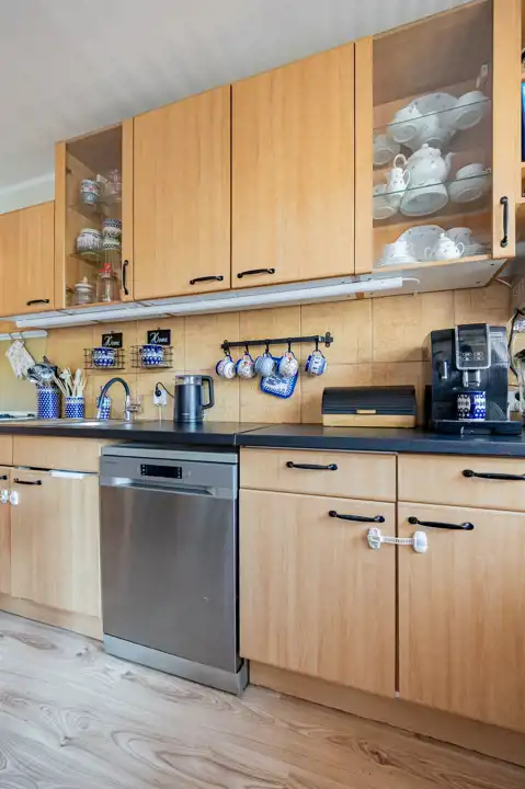- Salon z kuchnią: połączone w jedną, dużą strefę dzienną. To tutaj bije serce domu – z rodzinnym stołem i kuchnią, która dzięki dużej liczbie szafek pomieści absolutnie wszystko. Idealne miejsce na wspólne posiłki i wieczory z bliskimi.