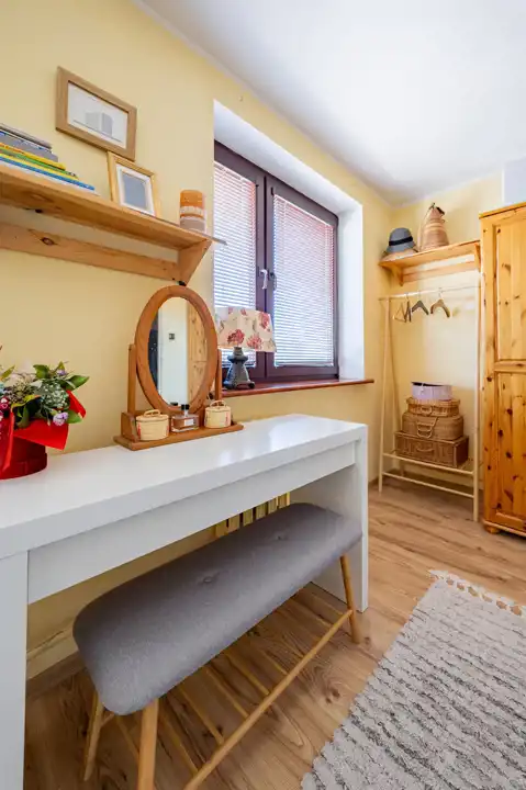 To mieszkanie oferuje coś, czego próżno szukać w typowym bloku: absolutny spokój i klimat, który każdego dnia przypomina drogę na wakacyjny spacer.