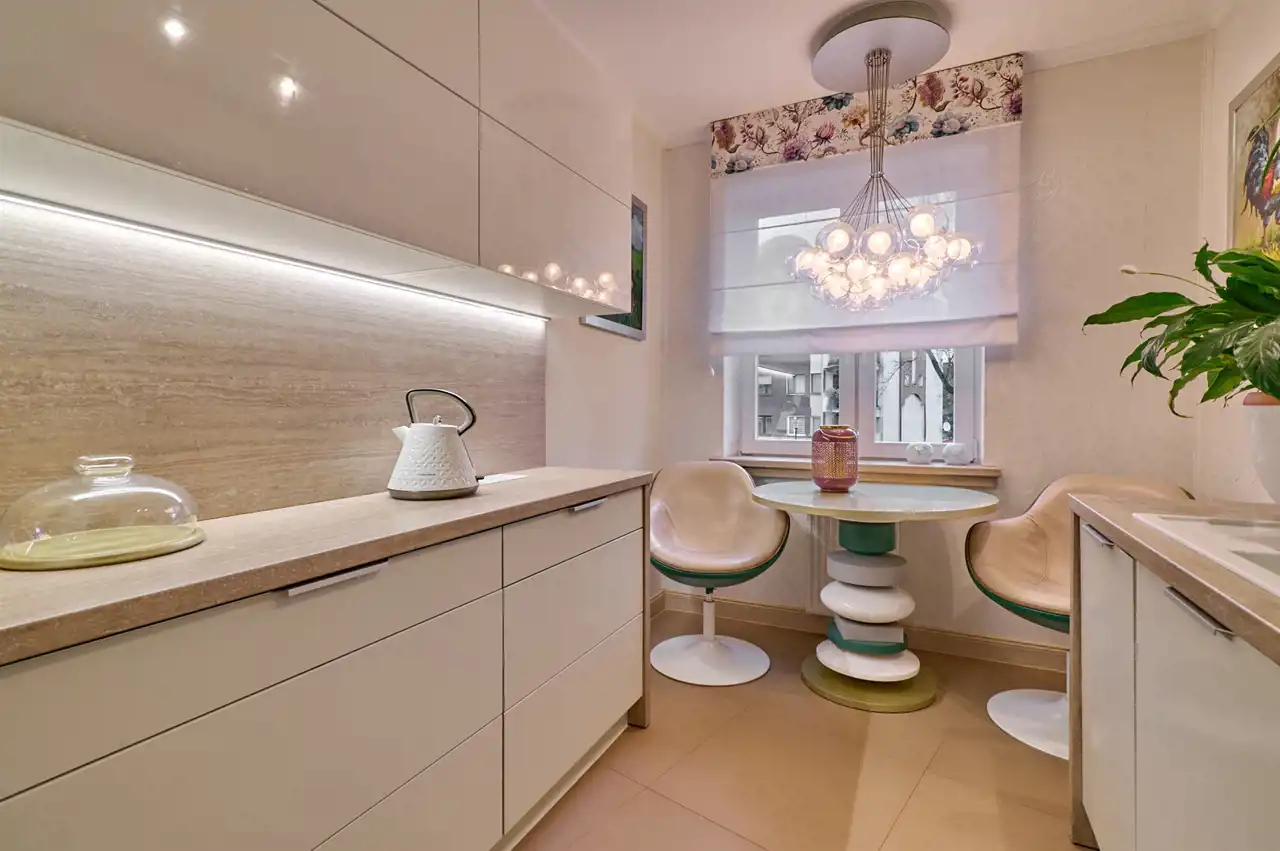 Niemal całość wyposażenia mieszkania pozostaje do dyspozycji nowego szczęśliwego nabywcy. Właściciele zabierają jedynie bibliotekę, niektóre obrazy oraz dekoracje.