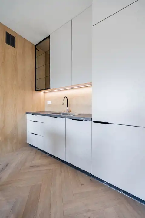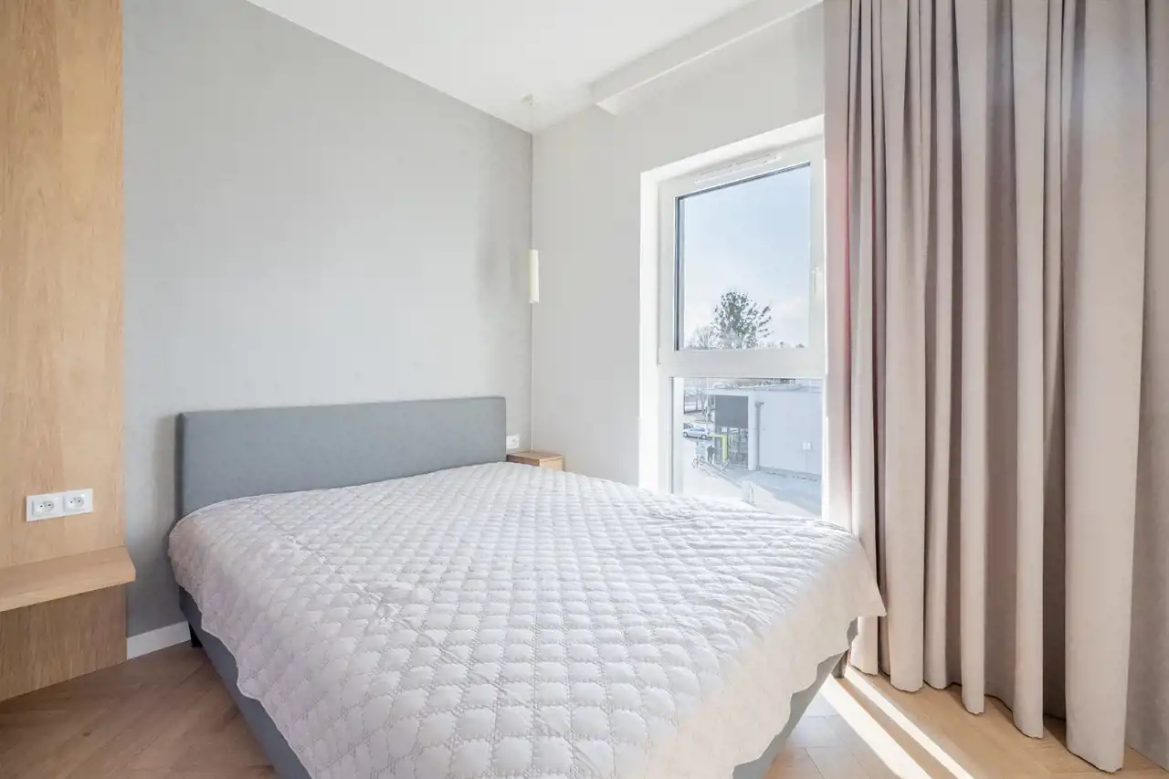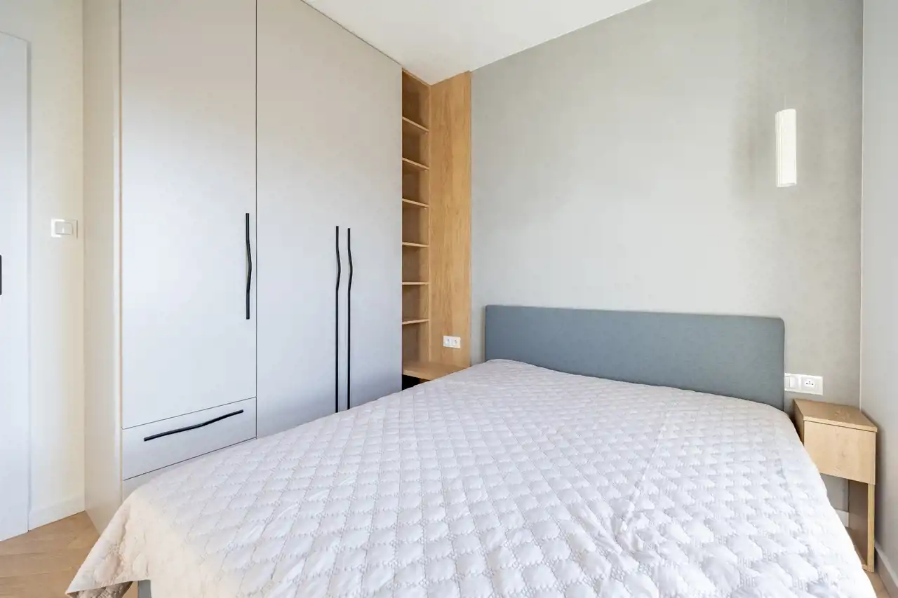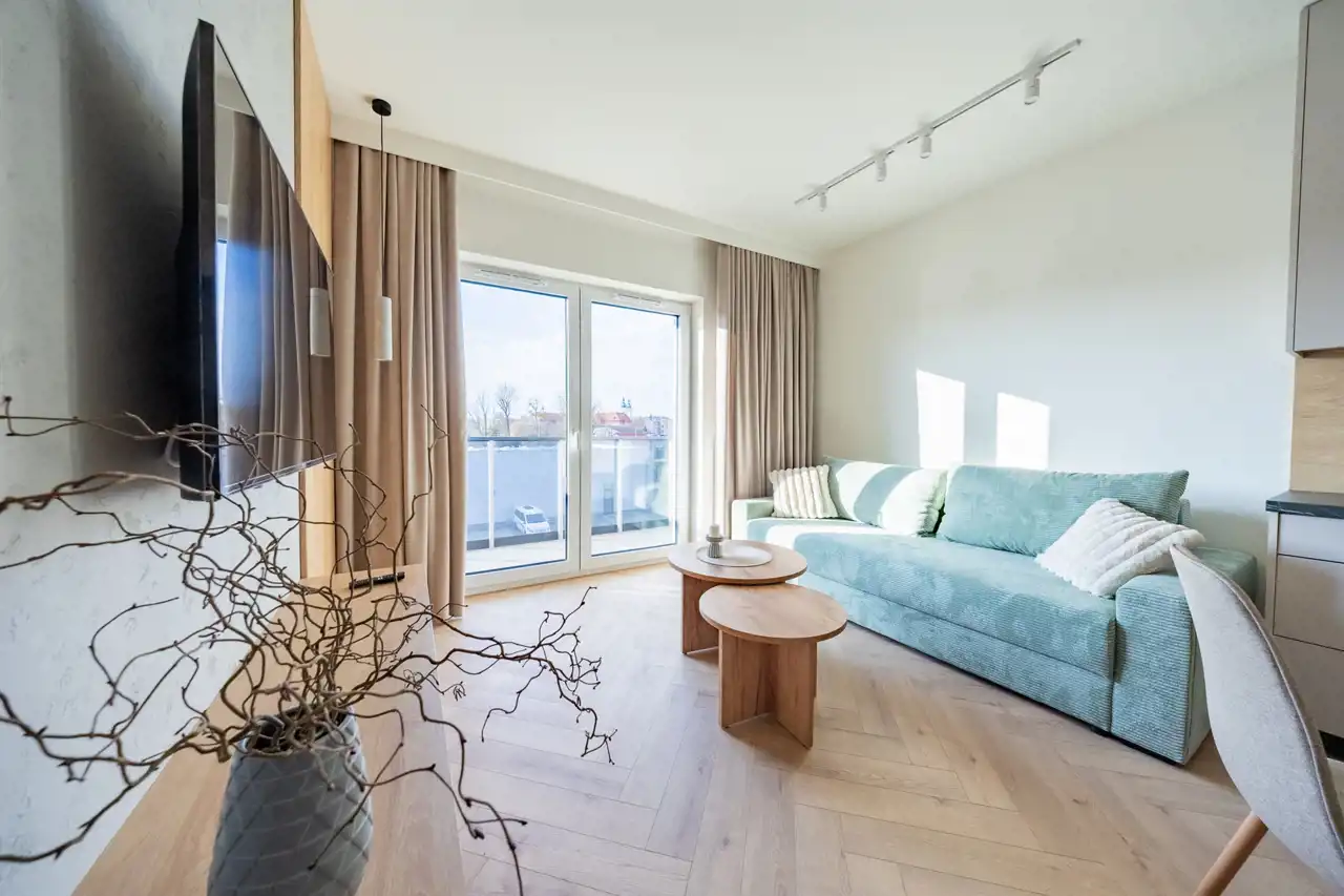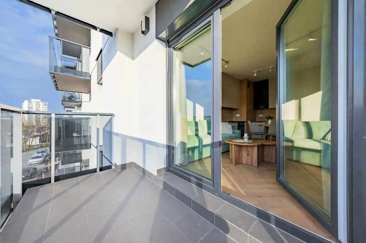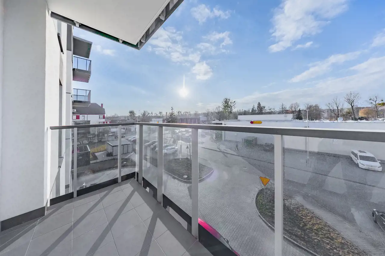 Mieszkanie zostało zaprojektowane z myślą o najbardziej wymagających użytkownikach. Salon z aneksem kuchennym to strefa relaksu i spotkań, a przytulna sypialnia zapewnia prywatność. Mieszkanie wyposażone w dwie pojemne szafy. Duże przeszklenia wpuszczają mnóstwo naturalnego światła, a przestronny balkon z oszkloną balustradą staje się naturalnym przedłużeniem salonu – idealnym na poranną kawę z widokiem na centrum miasta.
