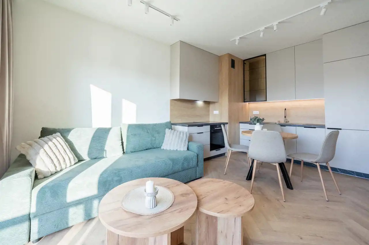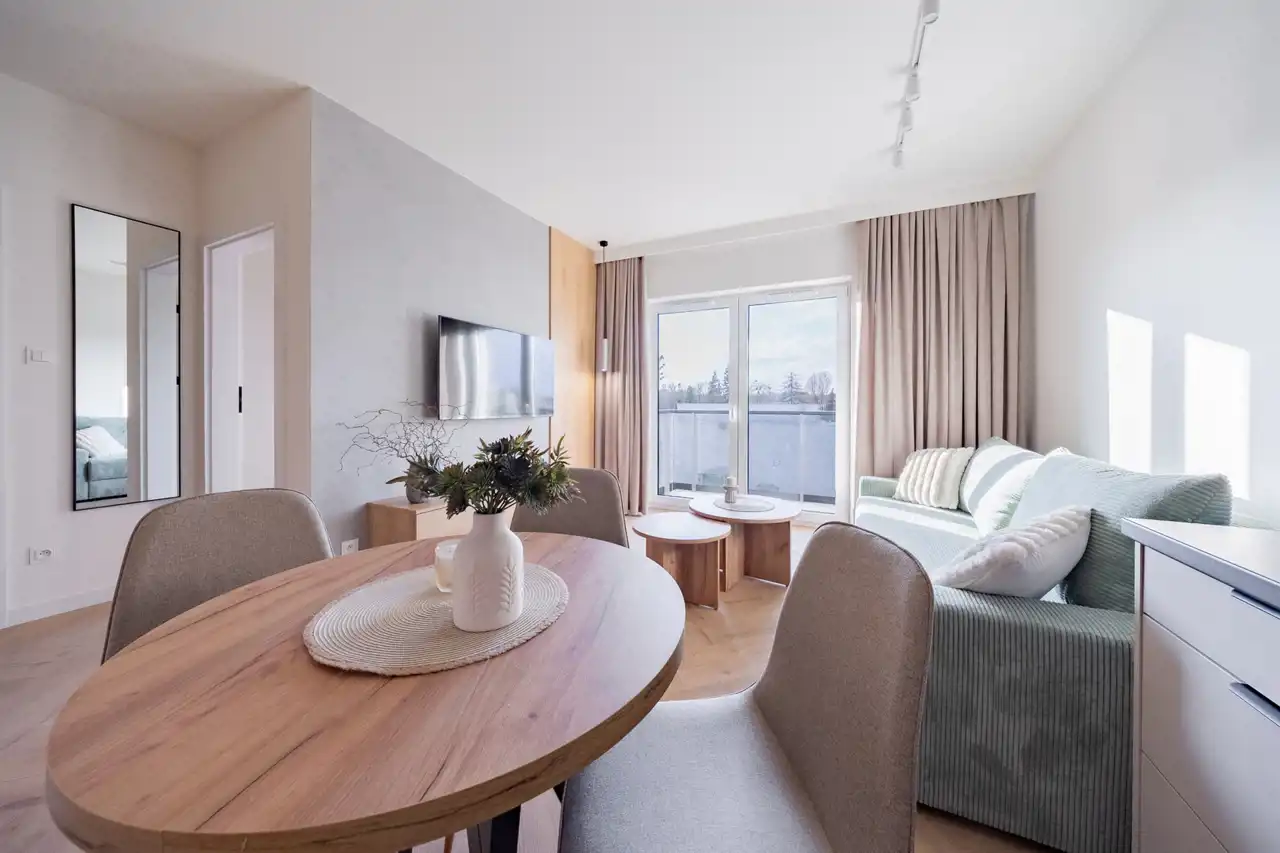 - Gotowe "Na Już": Mieszkanie jest w pełni urządzone i umeblowane. Wykończone z dbałością o każdy detal przy użyciu materiałów najwyższej klasy. Oszczędzasz miesiące pracy i stresu.