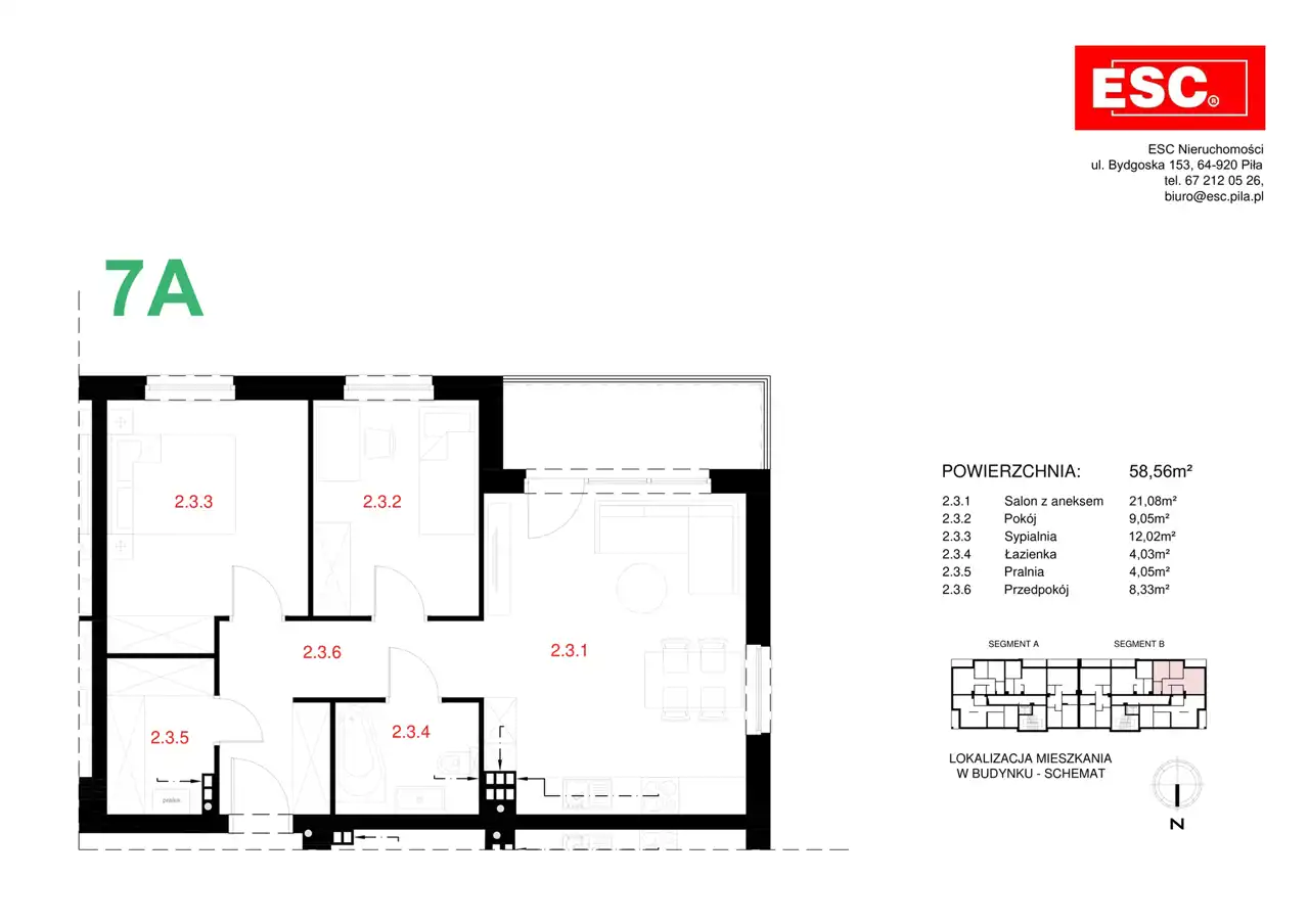 - Charakterystyka mieszkania 58.56 m2, 3 pokoje