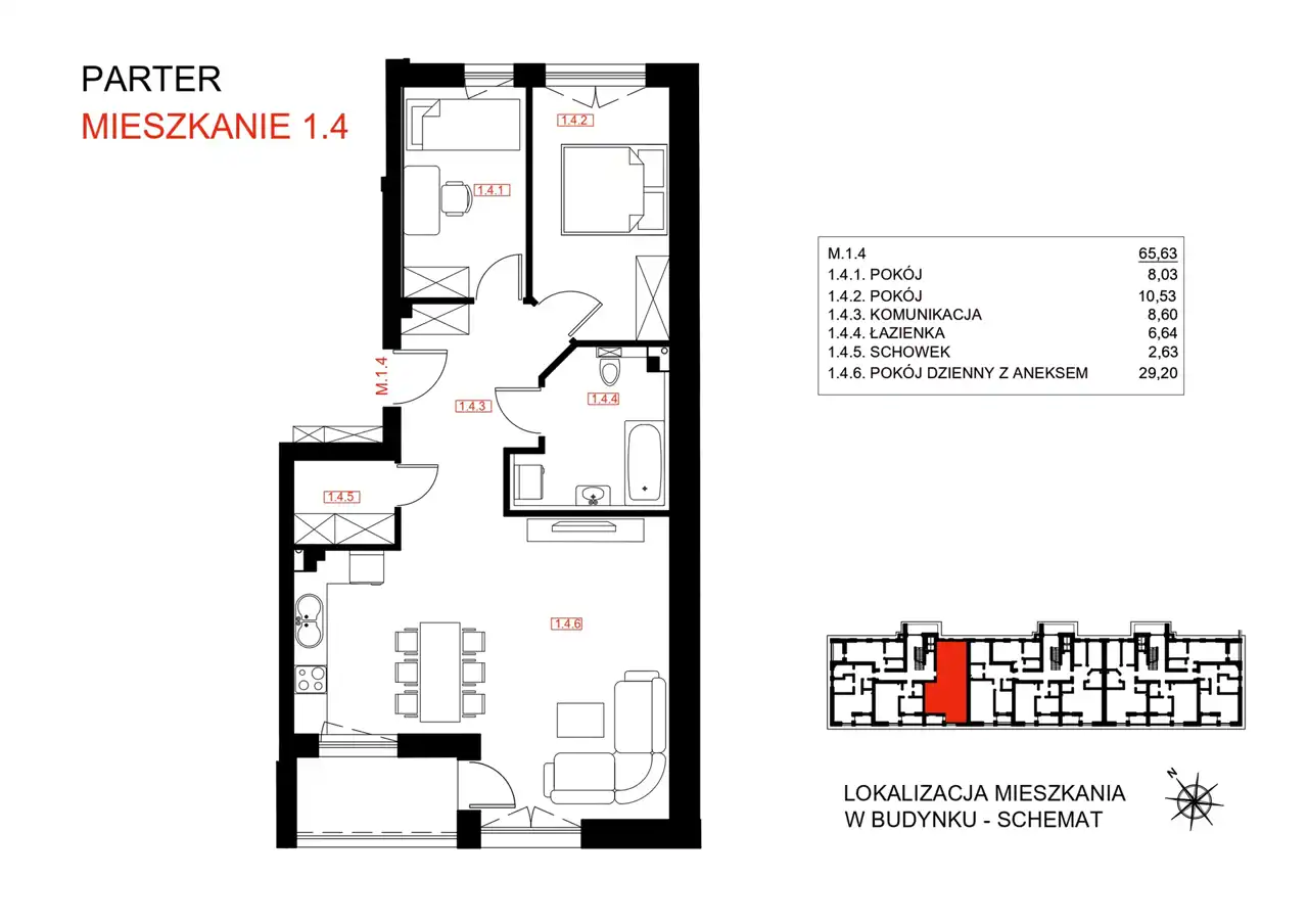 - Charakterystyka mieszkania 65.41 m2, 3 pokoje