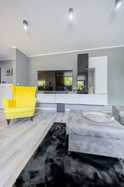 - Przestronny salon połączony z aneksem kuchennym: Serce mieszkania, idealne do relaksu i spotkań z bliskimi. Jasne i funkcjonalne, stwarza przestrzeń do gotowania i wspólnego spędzania czasu. Duże okna wychodzące na południowy wschód zapewniają doskonałe nasłonecznienie, a wyjście na balkon pozwala cieszyć się świeżym powietrzem i zielenią.