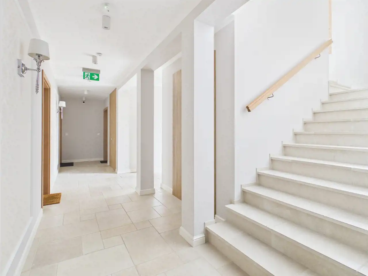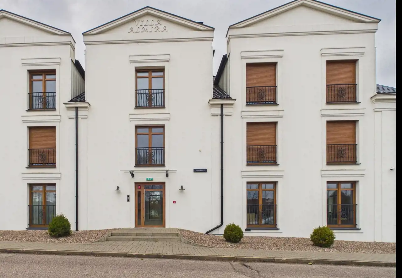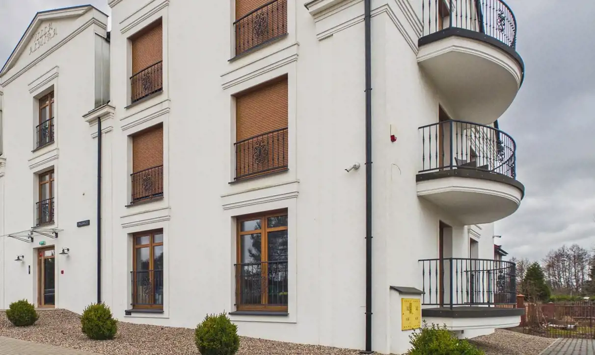 Nowoczesny, elegancki budynek o ponadczasowej architekturze, inspirowanej klasycznym stylem, wyróżnia się estetyczną, jasną elewacją oraz starannie dopracowanymi detalami wykończeniowymi. Duże okna zapewniają odpowiednie doświetlenie mieszkań i podkreślają prestiżowy charakter inwestycji. Całość prezentuje się bardzo schludnie i reprezentacyjnie, tworząc przyjazne i spokojne miejsce do życia. Części wspólne budynku zostały wykończone z dużą dbałością o detale. Klatka schodowa jest jasna, przestronna i utrzymana w stonowanej, nowoczesnej kolorystyce. Ściany wykończono w neutralnych barwach z dekoracyjnymi elementami. Drewniane drzwi do mieszkań oraz stylowe oświetlenie nadają wnętrzu ciepłego i przytulnego charakteru. Całość sprawia bardzo dobre wrażenie już od pierwszego wejścia i podnosi komfort codziennego użytkowania.
