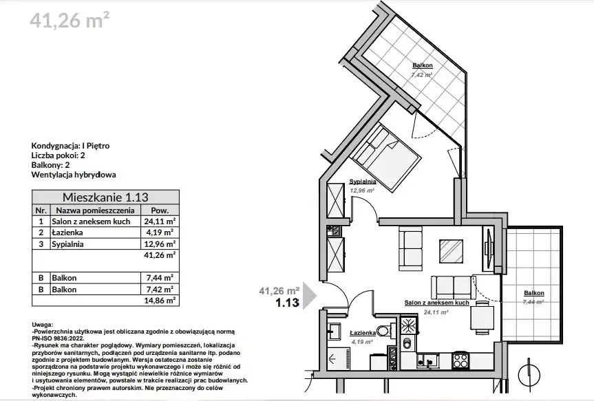 - Charakterystyka mieszkania 41.26 m2, 2 pokoje