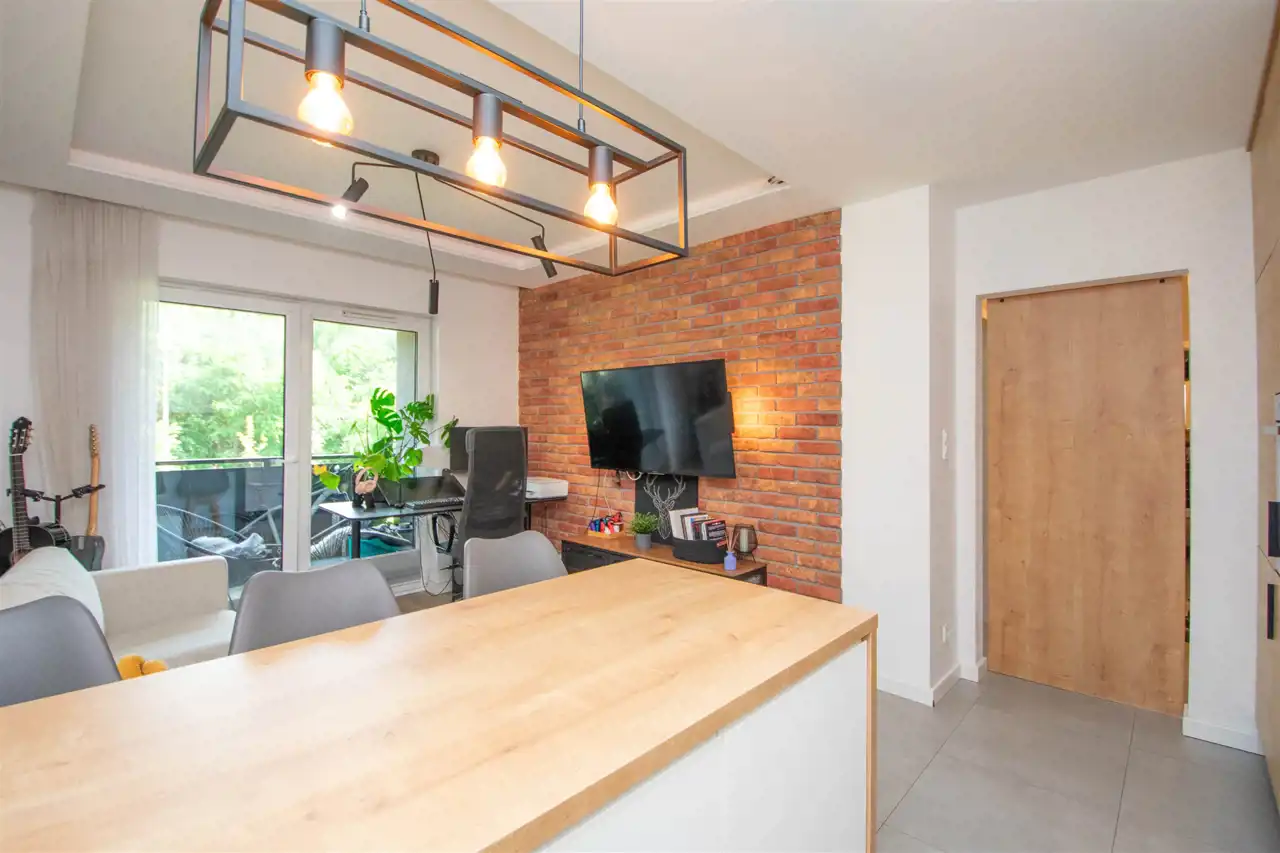 Lokalizacja jest doskonała – w bliskim sąsiedztwie znajdują się tereny spacerowe oraz rzeka, co sprawia, że jest to idealne miejsce dla miłośników aktywnego stylu życia. Przystanek autobusowy oddalony jest zaledwie o 50 metrów od budynku, co zapewnia doskonałą komunikację z resztą miasta.