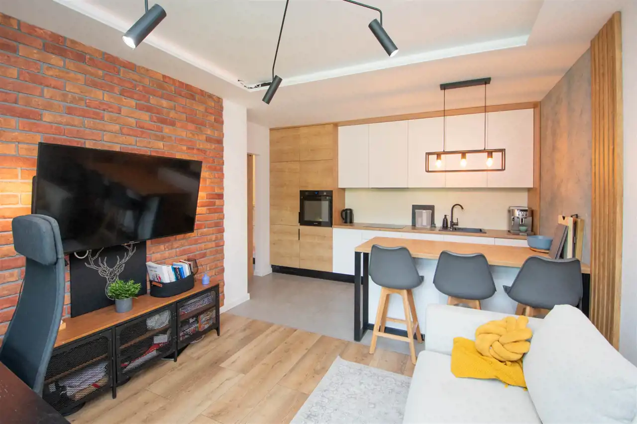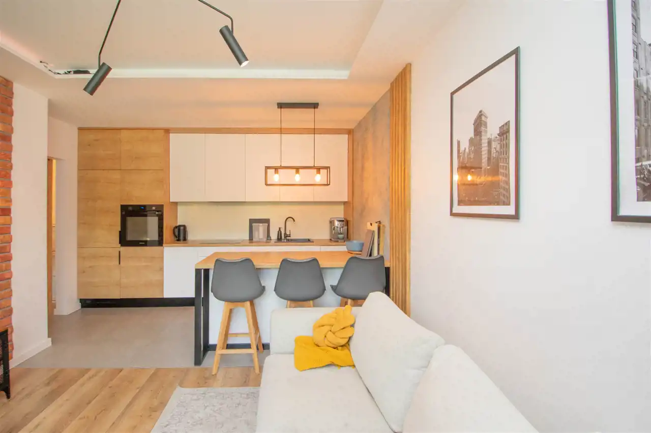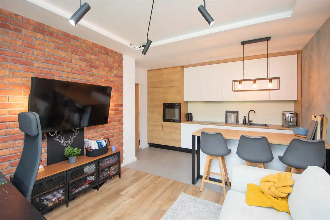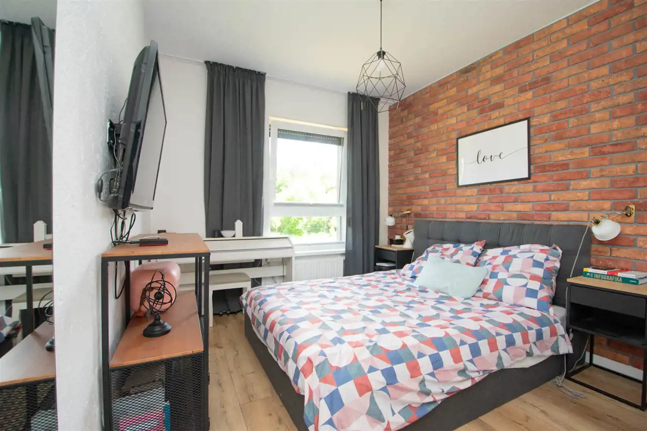 Mieszkanie składa się z trzech jasnych i ustawnych pokoi, które zostały starannie zaprojektowane przez projektanta wnętrz.