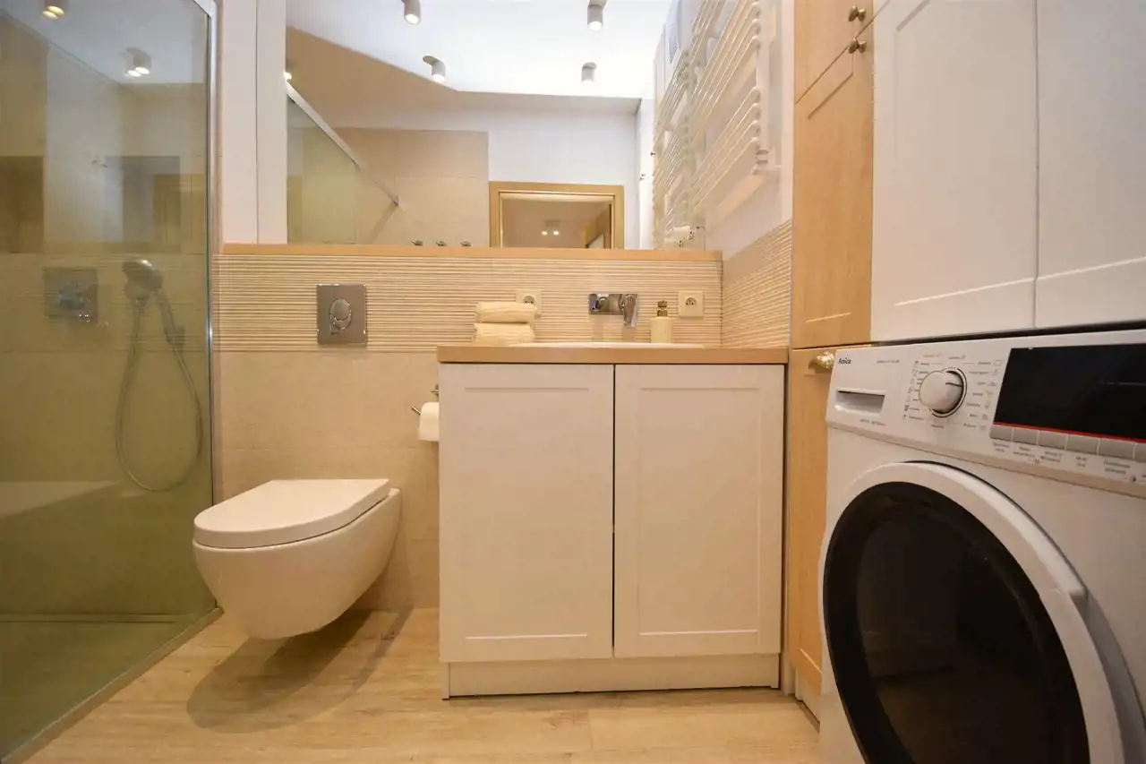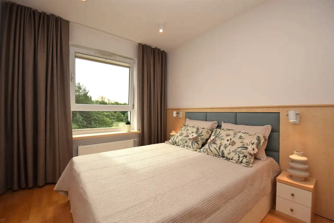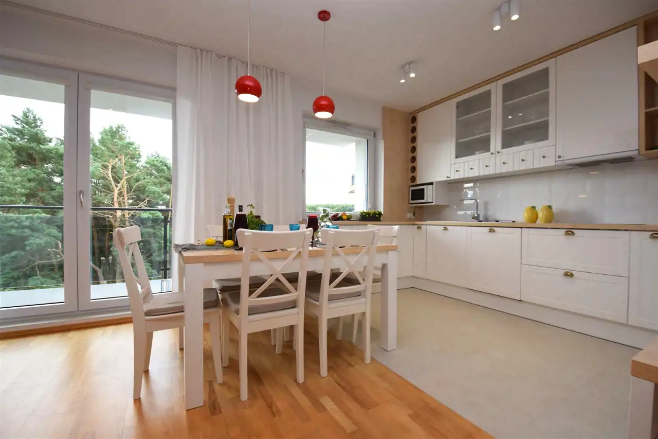 Umeblowany i wyposażony w sprzęt AGD apartament jednopoziomowy usytuowany na III piętrze budynku z 2014 roku.