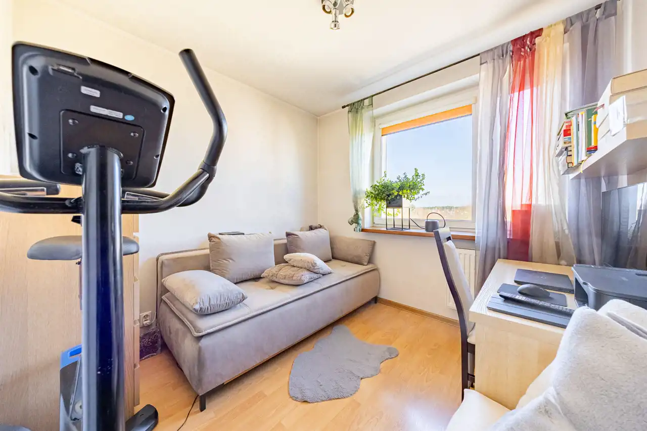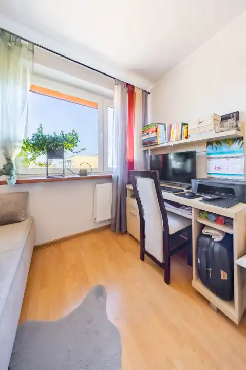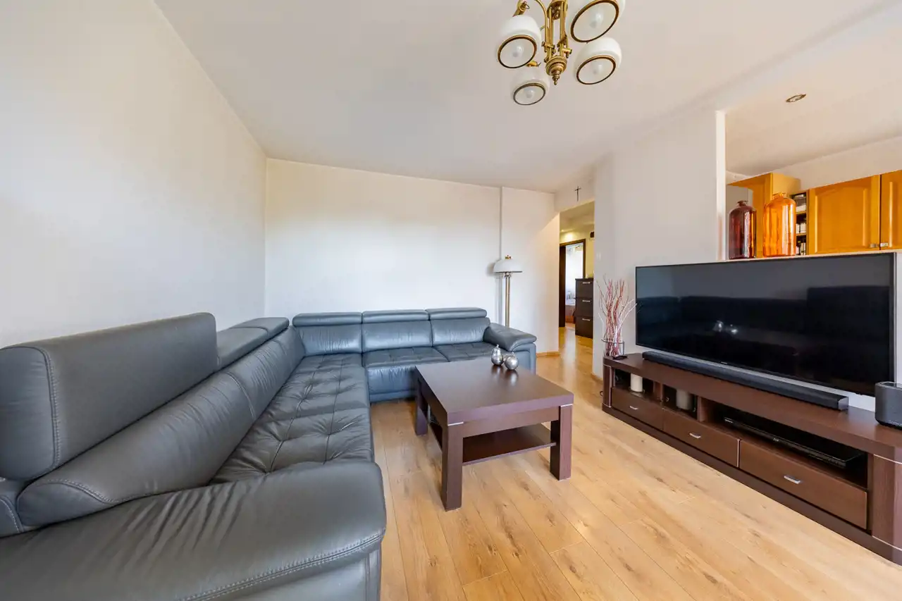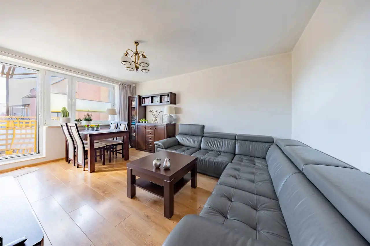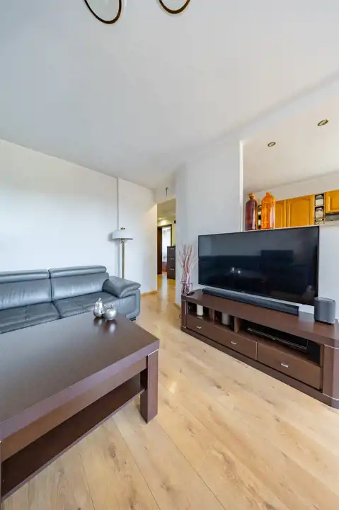 - Układ: ustawny salon z aneksem kuchennym + 3 zaciszne sypialnie, komfortowa łazienka i osobne WC.