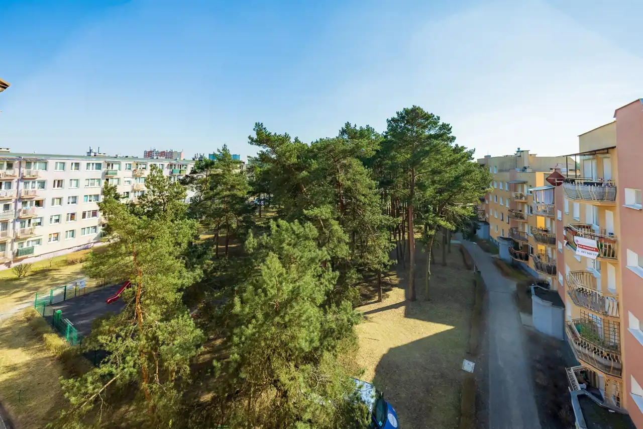 - Z balkonu prosto w zieleń: Twój balkon wychodzi na urokliwy lasek bezpośrednio przed blokiem.