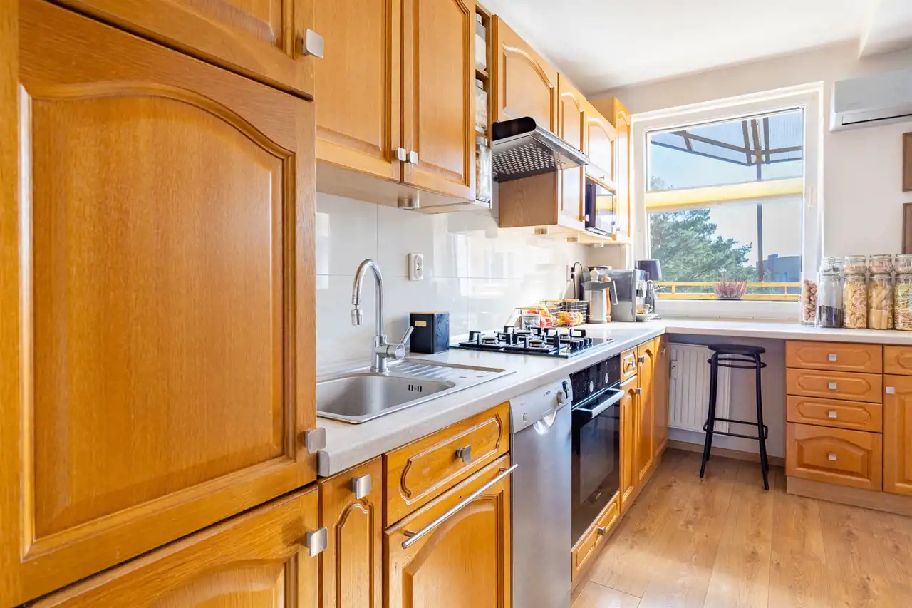 - Salon z sercem domu: Przestronna strefa dzienna z kamiennym parapetem i skórzaną kanapą wysokiej jakości (tylko 2-letnią!). Centralnym punktem jest rodzinny stół (rozkładany do 2,10 m), przy którym ugościsz nawet 12 osób.