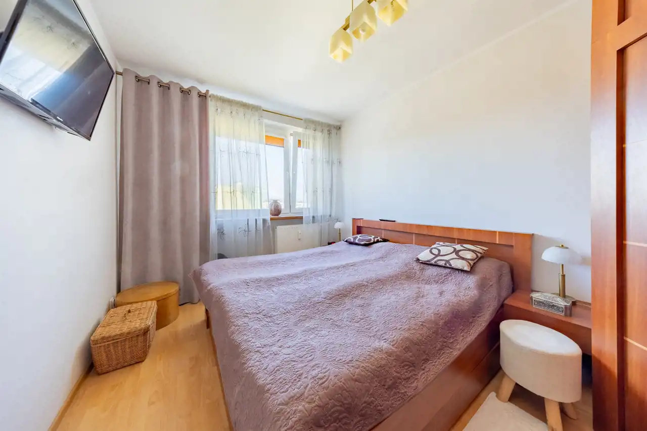 Kupując to mieszkanie, otrzymujesz kompletny pakiet. Zostają wszystkie meble (za wyjątkiem tapczanu w małym pokoju), sprzęty AGD i soundbar w salonie, a nawet telewizory (w salonie i w sypialni) oraz pralka.