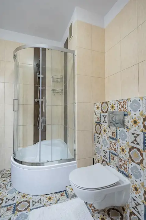 Łazienka z WC – przestronna, funkcjonalna, z miejscem na wygodne rozwiązania aranżacyjne.