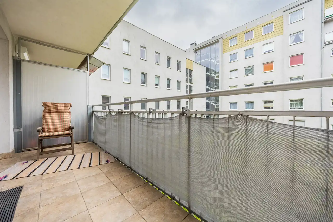 Loggia od strony południowej – obszerna, dająca możliwość stworzenia prywatnej strefy relaksu. To idealne miejsce na poranną kawę, popołudniowy odpoczynek z książką czy wieczorne spotkania w gronie bliskich.
