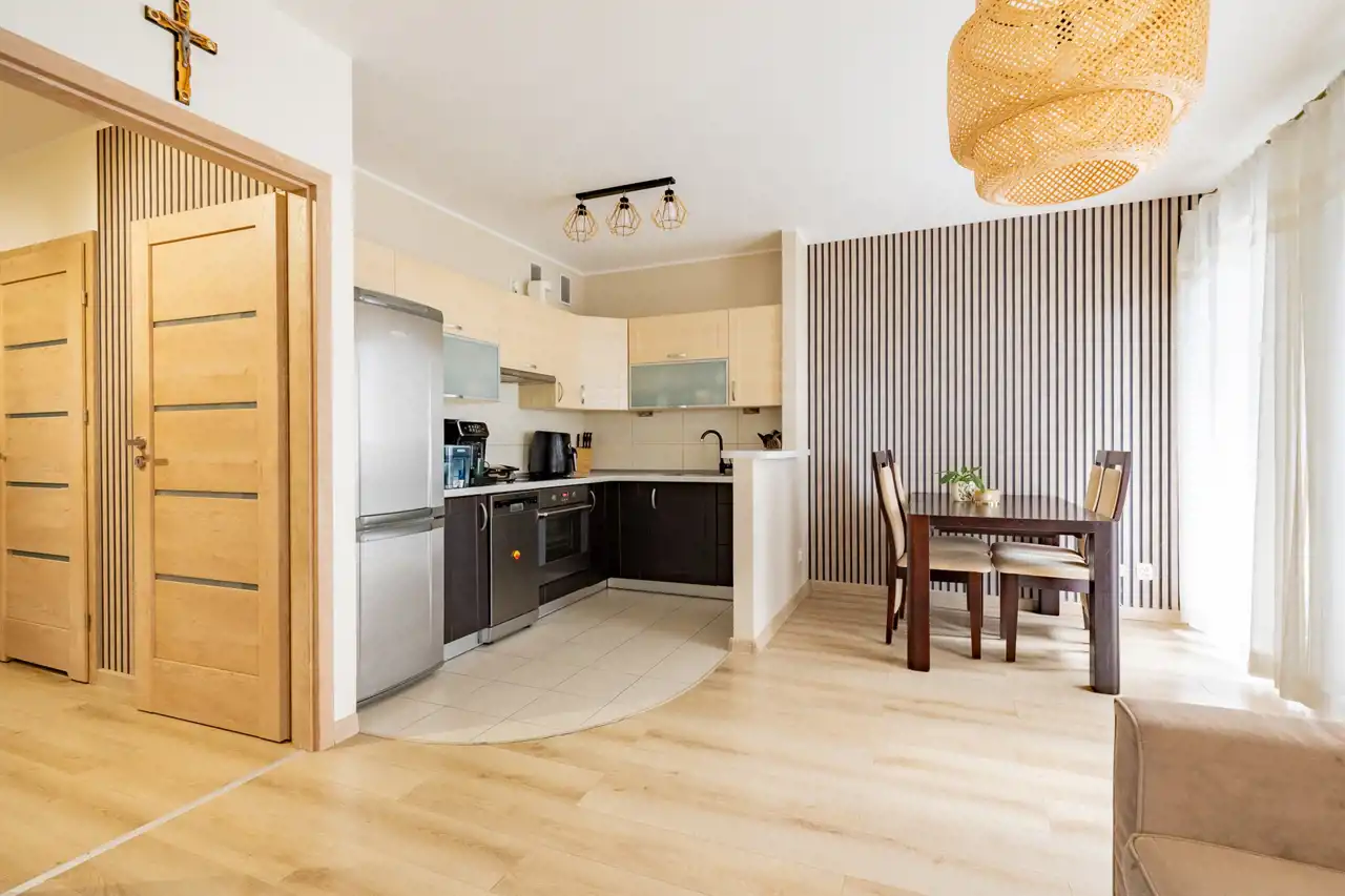 Mieszkanie zostało zaprojektowane z myślą o wygodzie i komforcie codziennego życia. Idealne zarówno dla rodziny z dziećmi, jak i dla pary ceniącej przestrzeń i nowoczesne rozwiązania.