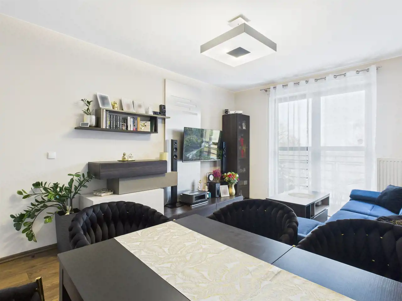jasny salon (16,7 m²) z wyjściem na balkon