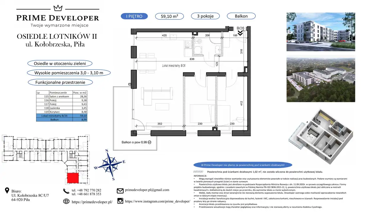 - Charakterystyka mieszkania 59.1 m2, 3 pokoje