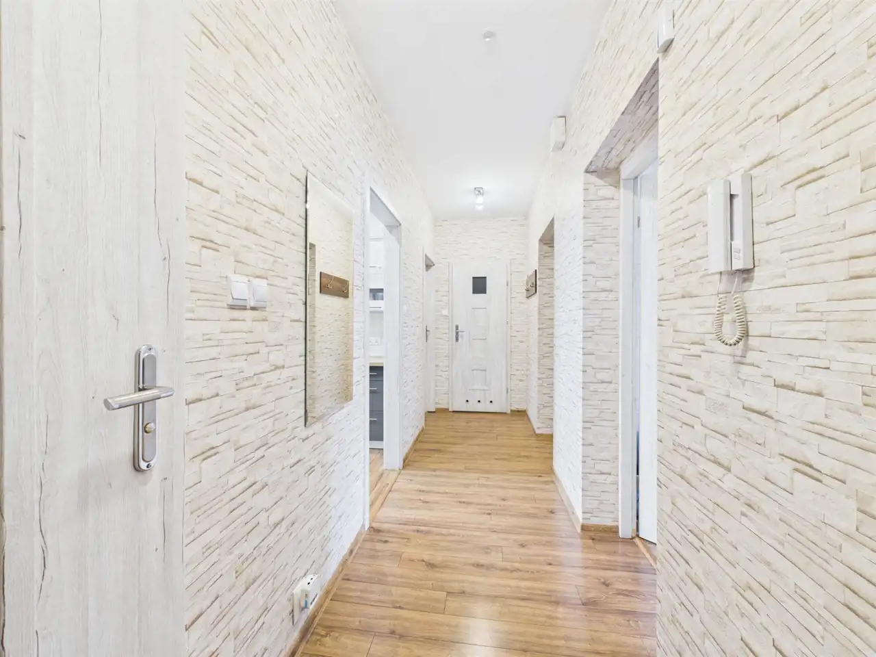 Mieszkanie zachwyca przemyślanym rozkładem pomieszczeń – do każdego z nich prowadzi niezależne wejście z przedpokoju, co zapewnia wygodę i prywatność.