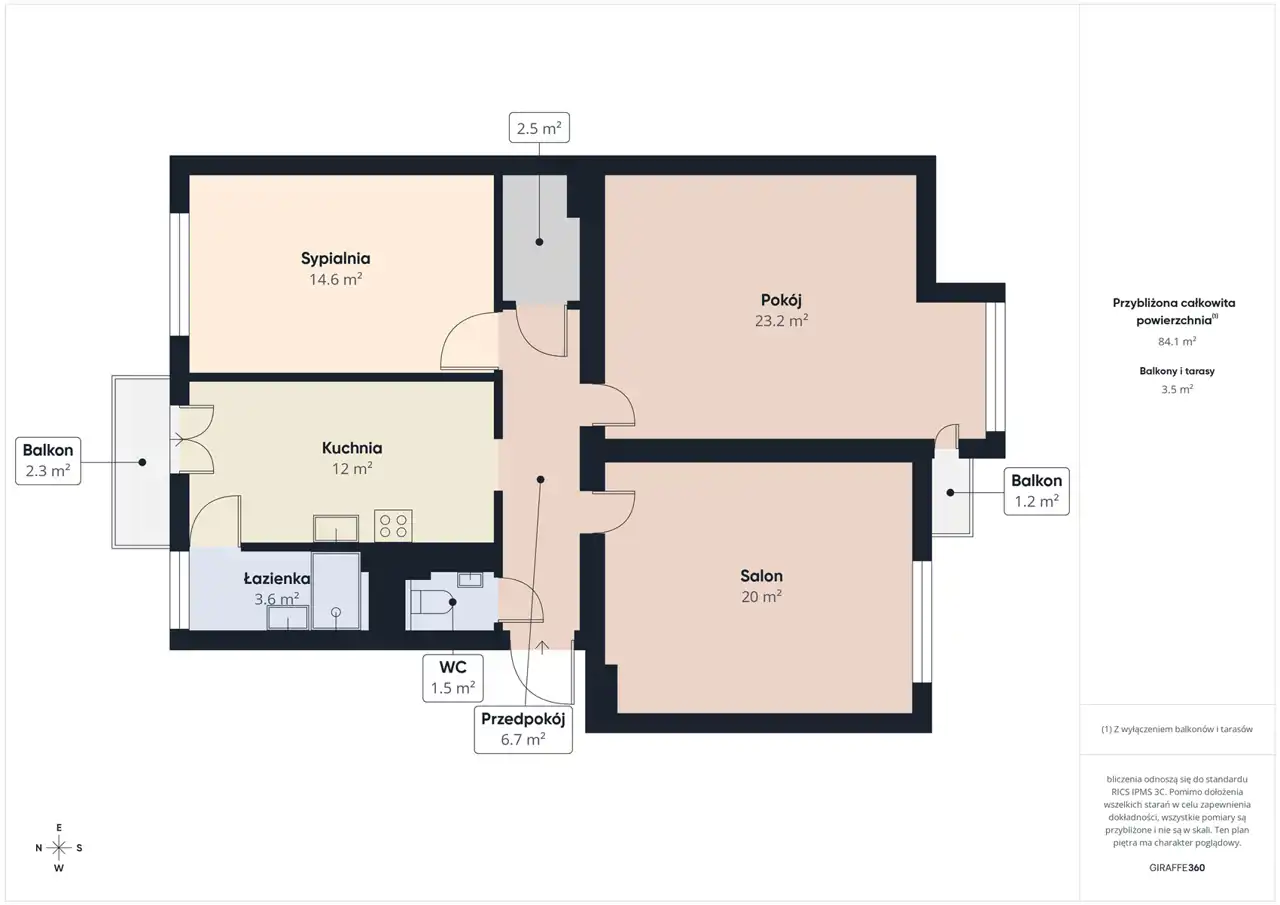 - Charakterystyka mieszkania 84.7 m2, 3 pokoje
