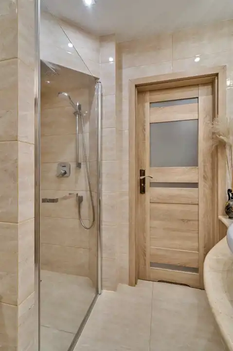 - Media Ogrzewanie: C.O. miejskie; Woda: przepływowy piec gazowy; Gaz: tak - miejski