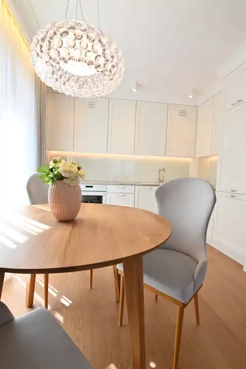 Już od wejścia wyczuwalny jest klimat inspirowany włoskim designem: elegancka sztukateria, dopracowane detale, spójna kolorystyka i materiały, które nie udają luksusu — one nim są.