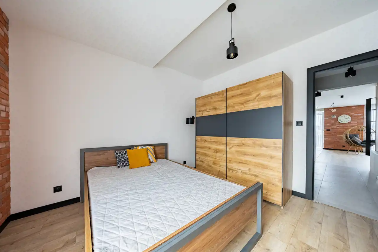 - Duża sypialnia – spokojna strefa odpoczynku.