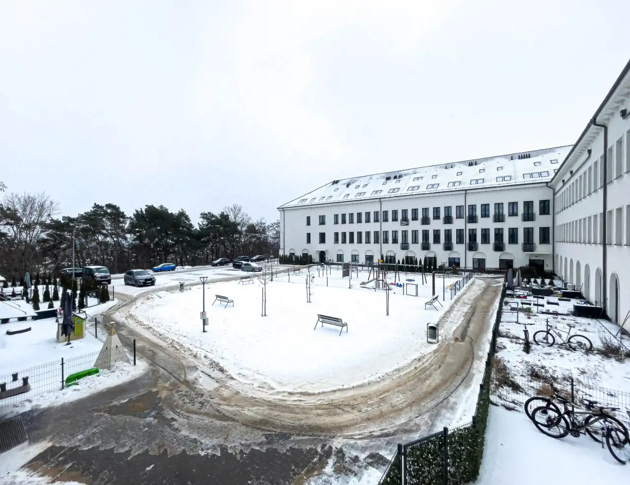 Cały teren ogrodzony i monitorowany. Pięknie zagospodarowany dziedziniec z dużym placem zabaw dla dzieci.