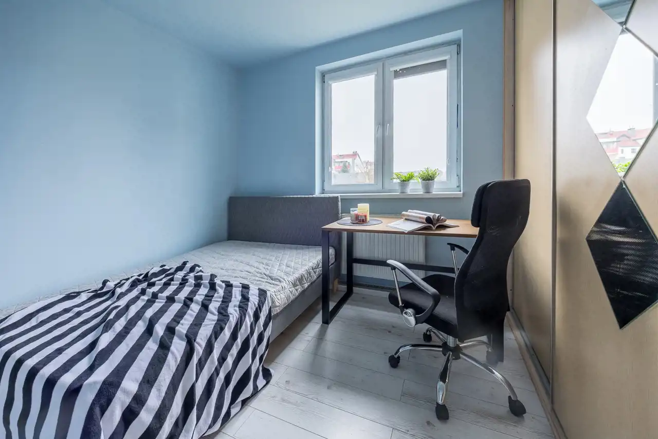 - Opłaty: Niski czynsz administracyjny – tylko 341 PLN. Do tego opłaty za ogrzewanie miejskie, wodę i prąd.