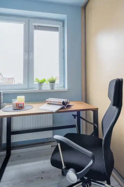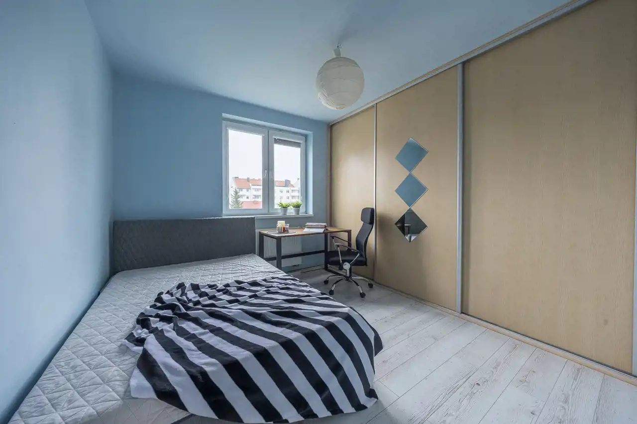 - Opłaty: Niski czynsz administracyjny – tylko 341 PLN. Do tego opłaty za ogrzewanie miejskie, wodę i prąd.