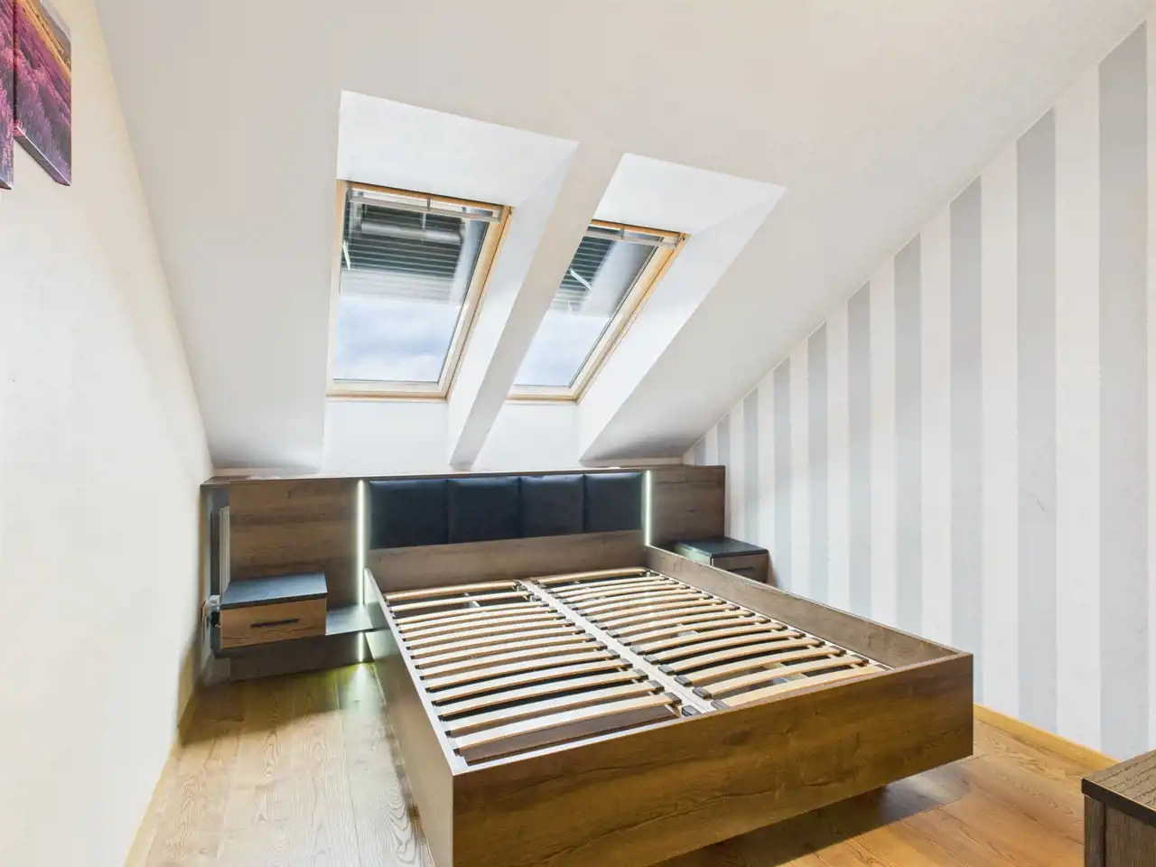 Okna połaciowe są drewniane 3-szybowe z roletami zewnętrznymi.