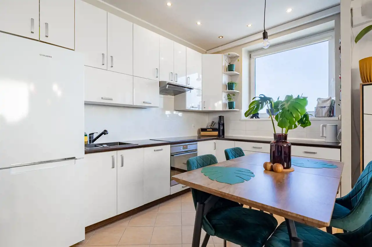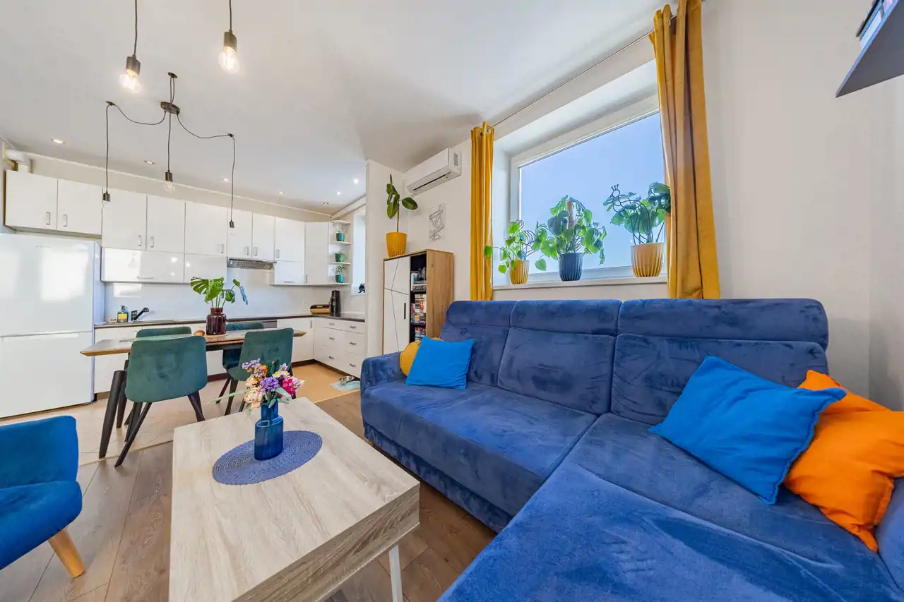 - Widok, który relaksuje: Najwyższe piętro gwarantuje prywatność, brak sąsiadów "nad głową" oraz niesamowitą panoramę miasta, którą możesz podziwiać z balkonu wyposażonego w markizę.
