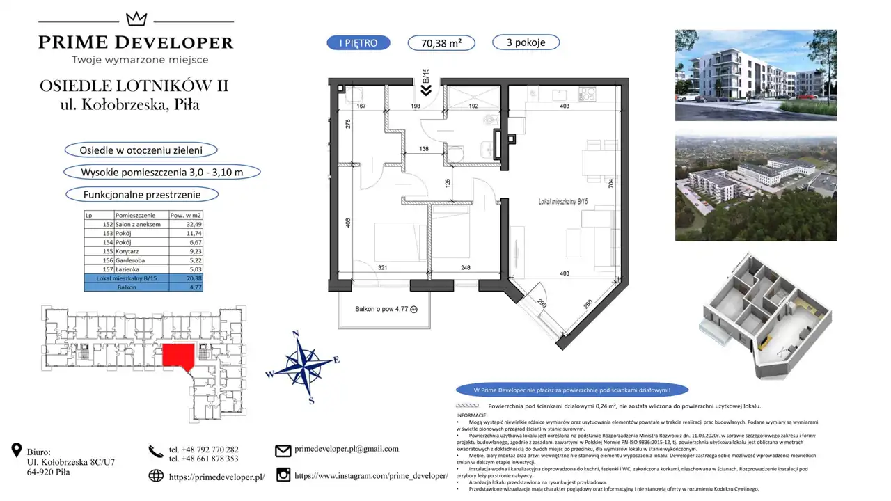 - Charakterystyka mieszkania 70.38 m2, 3 pokoje
