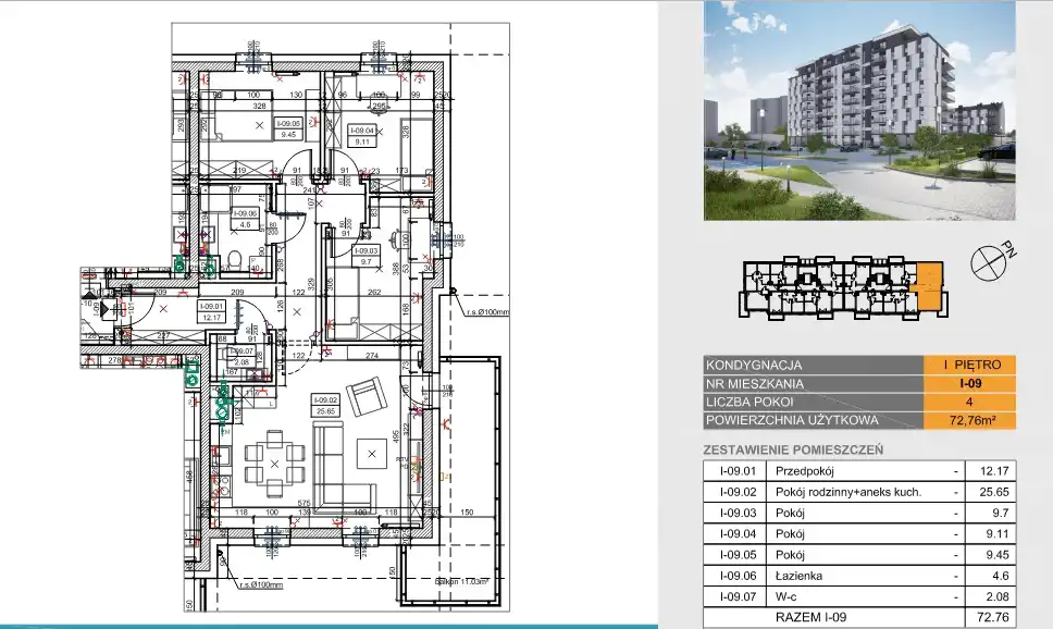 - Charakterystyka mieszkania 72.76 m2, 4 pokoje