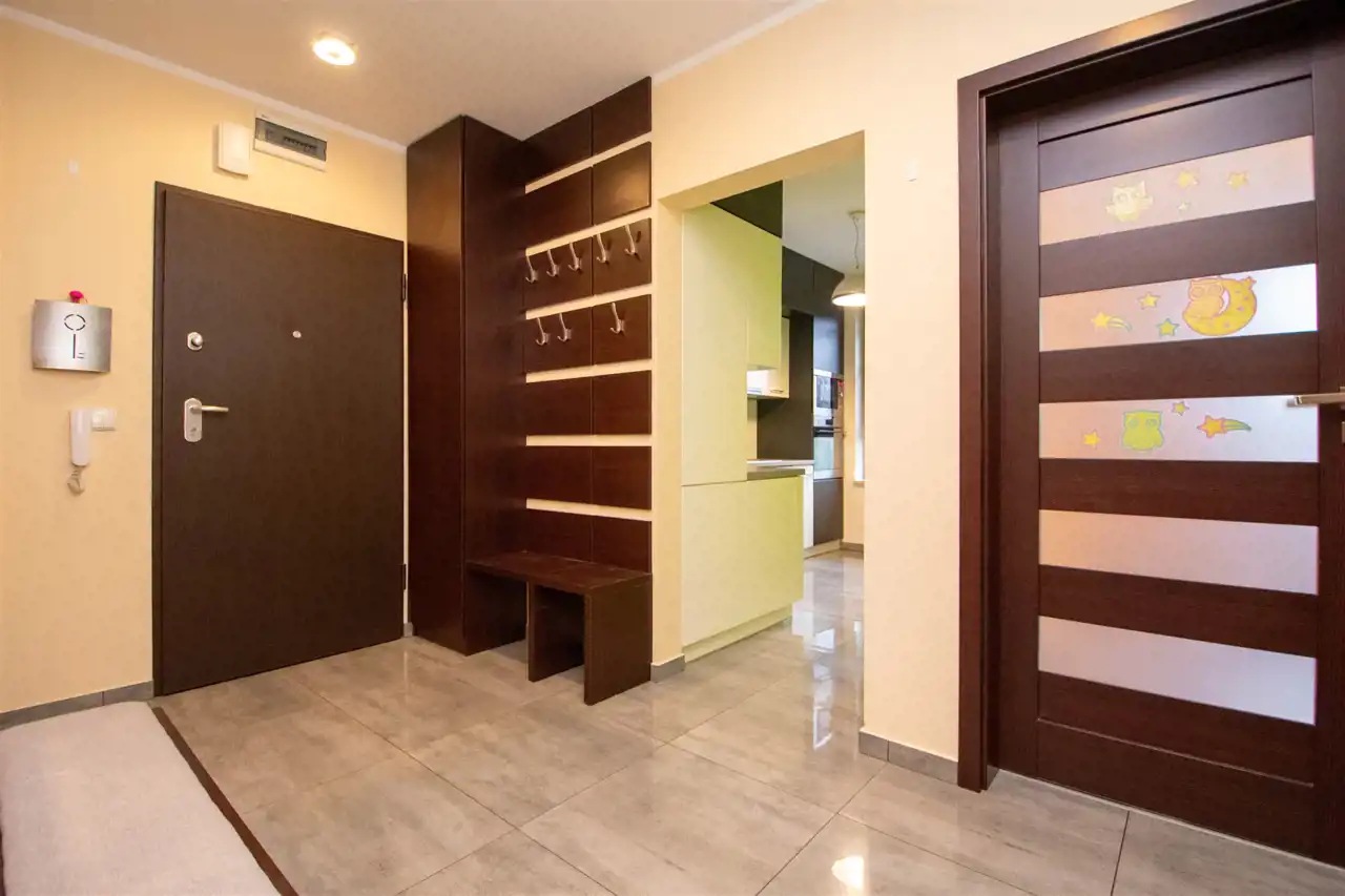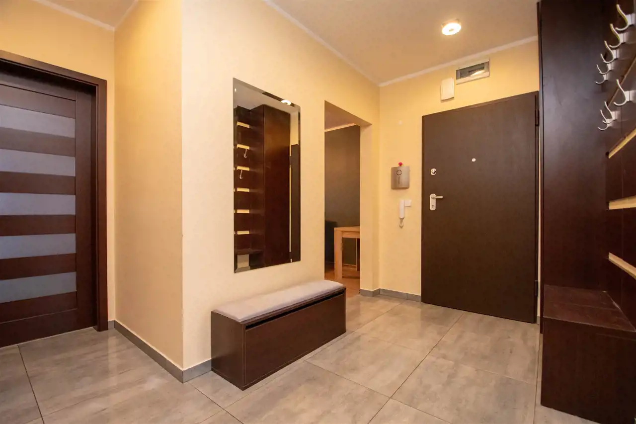 Dwustronne rozkładowe mieszkanie w nowym budownictwie ( 2014 ) o powierzchni 60,13 m2 w bardzo atrakcyjnej lokalizacji na osiedlu Zamość w Pile. Ściany pomieszczeń z wyjątkiem łazienki gipsowane i malowane. W łazience glazura ścienna i podłogowa oraz na wyposażeniu prysznic oraz pralka i suszarka. Na posadzkach pomieszczeń płytki, w salonie i w pokojach panele. Kuchnia wyposażona w sprzęt AGD (kuchenkę indukcyjną, piekarnik elektryczny, zmywarkę, lodówkę z zamrażarką w zabudowie, okap kuchenny) oraz baterię i zlewozmywak.