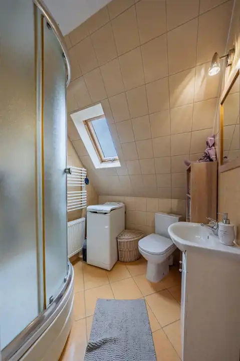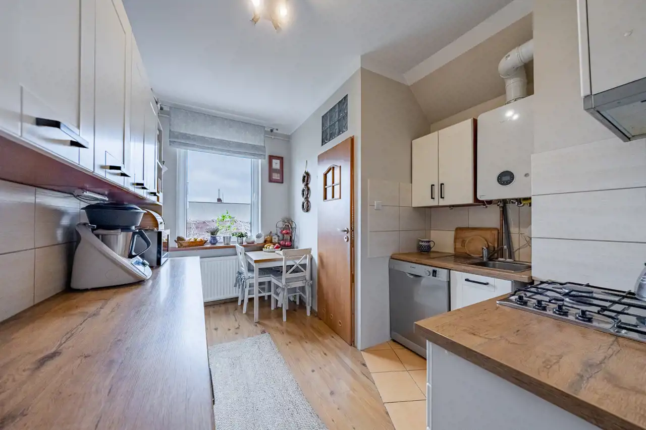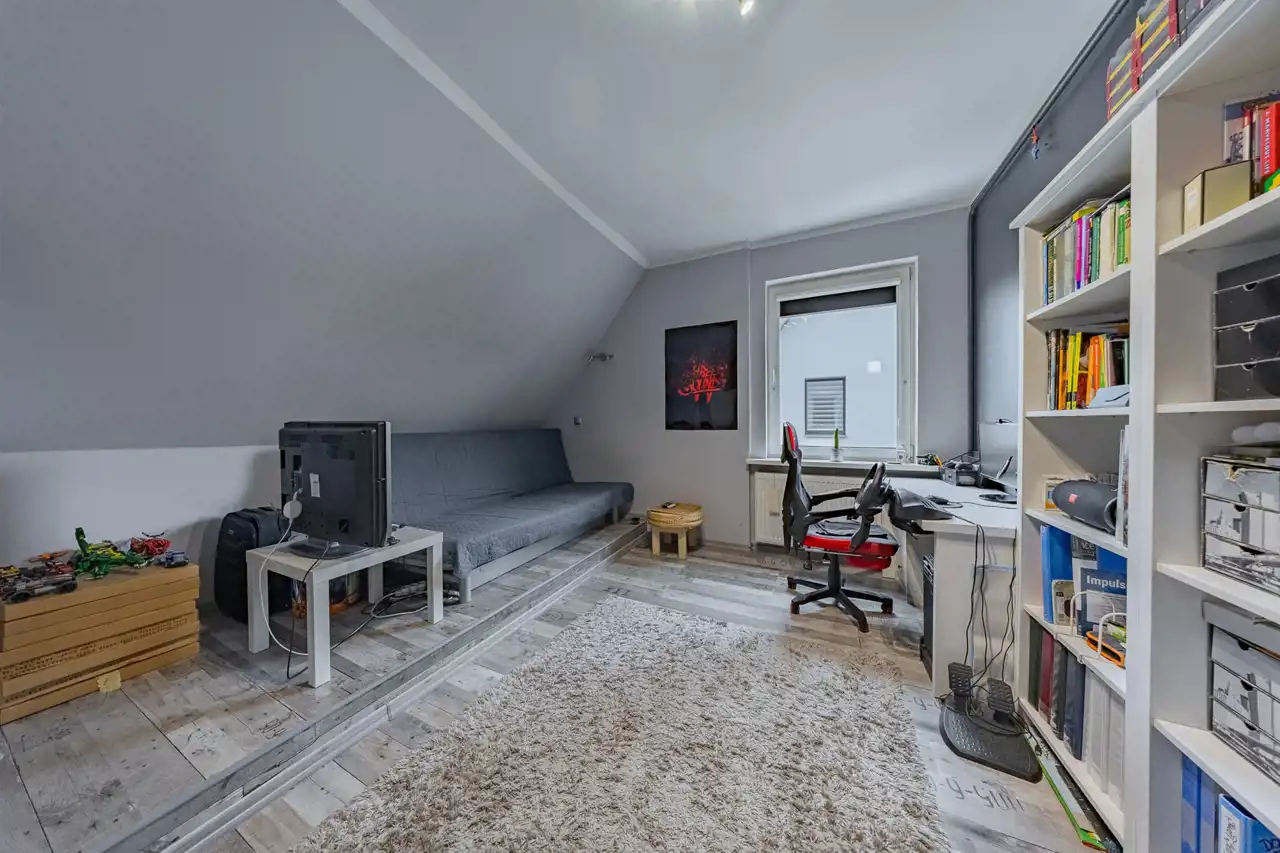 Warto podkreślić, że choć powierzchnia użytkowa mieszkania wynosi 69 m2, to powierzchnia przypodłogowa wraz z zaadaptowanym poddaszem sięga około 90 -100 m2, co daje dodatkową, znaczną przestrzeń do wykorzystania.