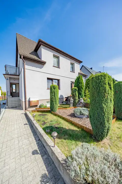 Dodatkowe powierzchnie: Do dyspozycji pomieszczenie gospodarcze na półpiętrze oraz piwnica składająca się z dwóch pomieszczeń o łącznej powierzchni około 40 m2. Dodatkowo budynek gospodarczy o powierzchni około 11 m2.
