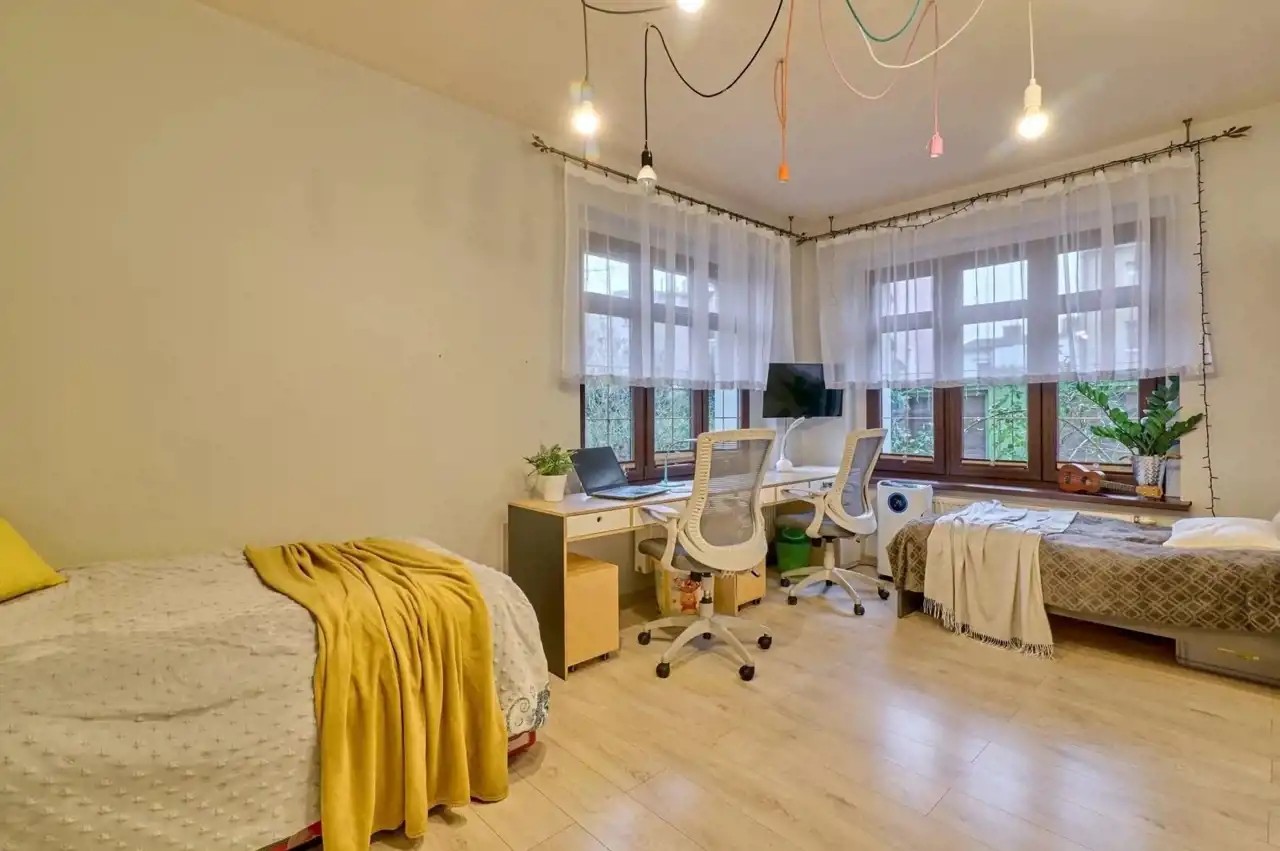 - 4 duże pokoje o różnym przeznaczeniu (salon 21,5m2, gabinet 22,1m2, pokój dziecięcy 20,6m2, sypialnia 8m2), część mebli pozostaje w cenie,