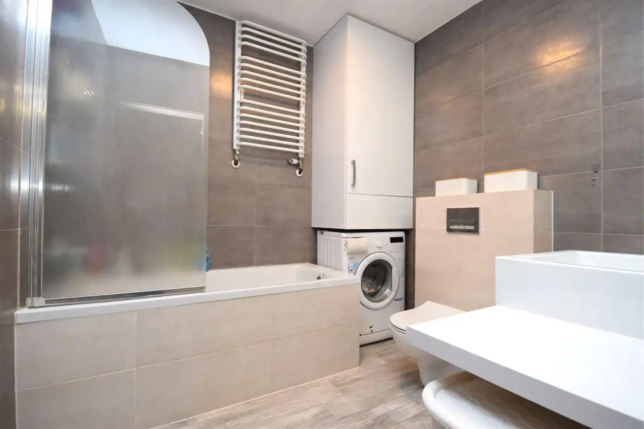 - łazienka- 5m2- z wanną, ze szklanym parawanem- opcja natrysku