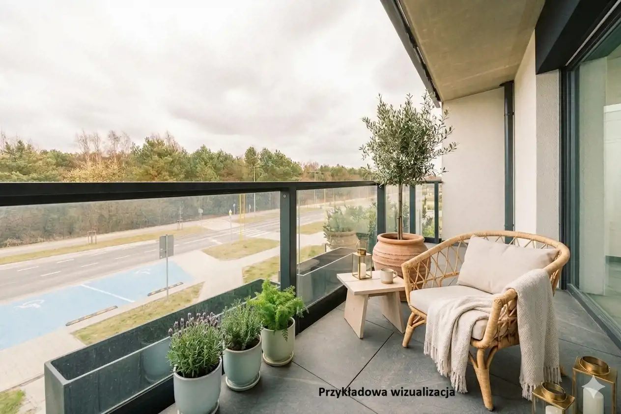 Duża loggia z widokiem na las to prywatna strefa relaksu, której nie da się przecenić. Poranna kawa, cisza, zieleń i brak zabudowy przed oknami — to komfort, który rzadko trafia się w nowych inwestycjach.