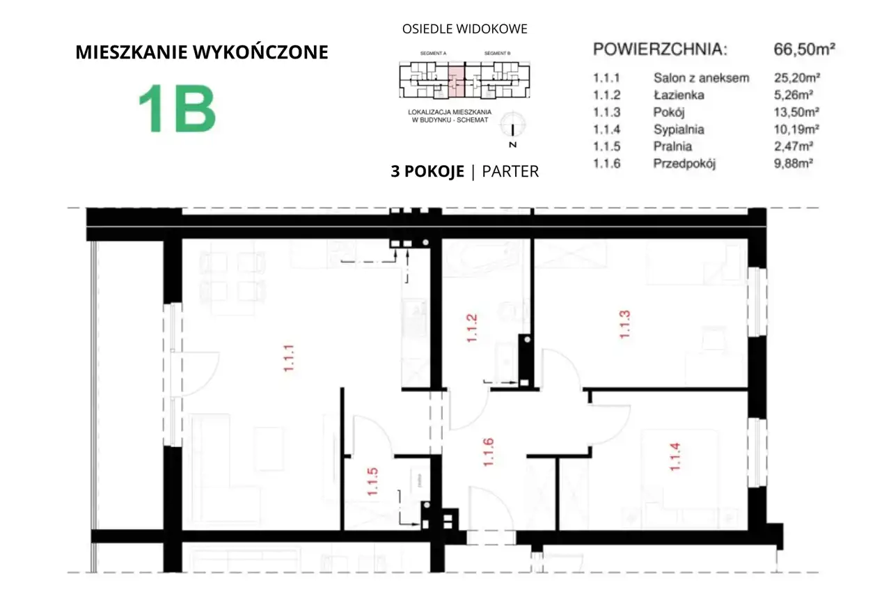 - Charakterystyka mieszkania 66.5 m2, 3 pokoje