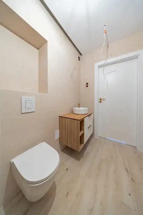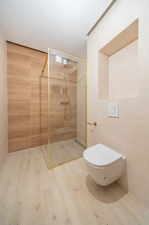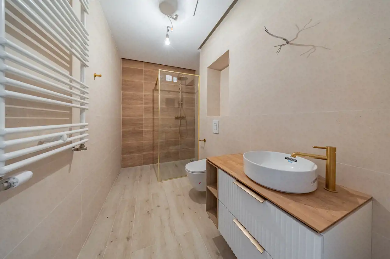 - łazienka wykończona nowoczesnymi płytkami, wyposażona w kompletną, wysokiej jakości armaturę, zapewniającą wygodę użytkowania.
