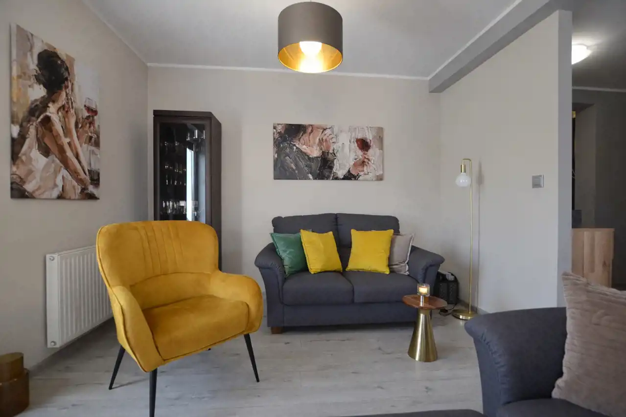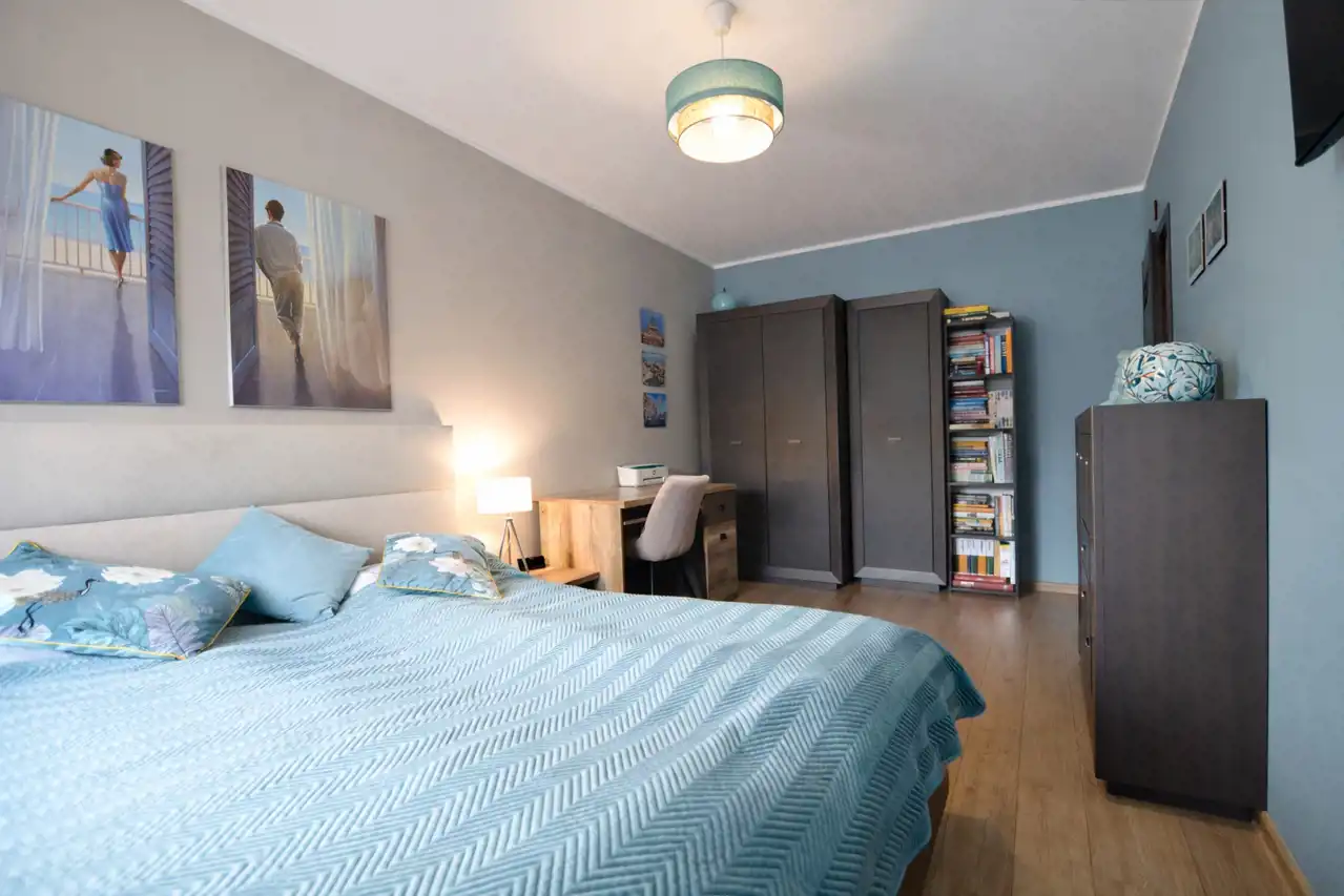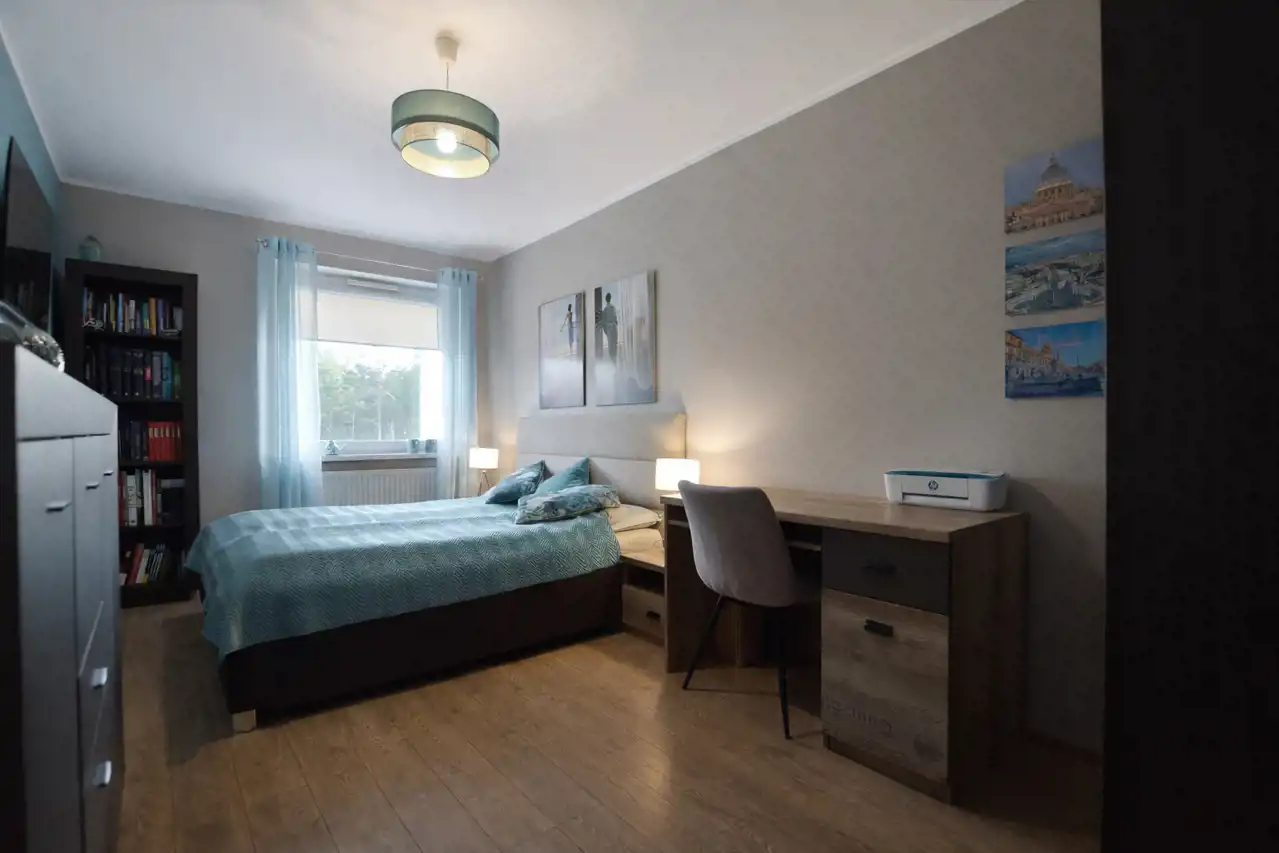 Mieszkanie zostało wykończone z dbałością o najmniejsze detale. Sąsiedztwo rzeki i spokojna okolica zapewni komfort mieszkańcom.