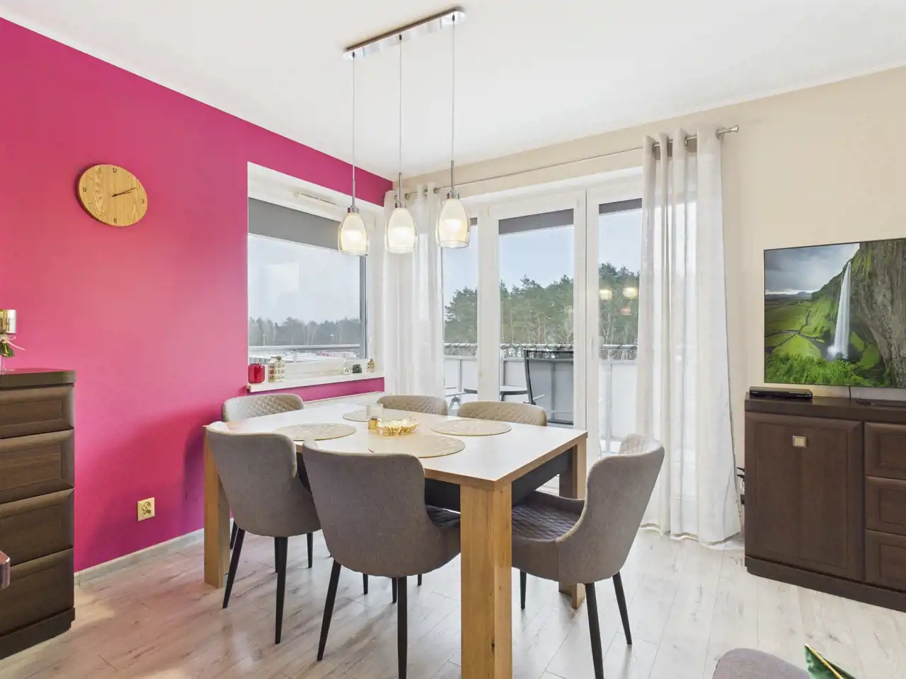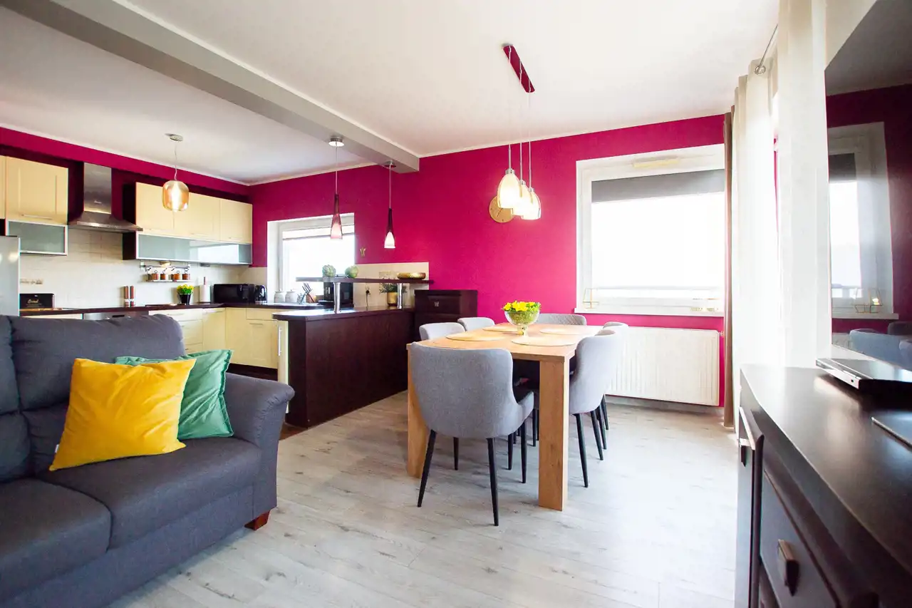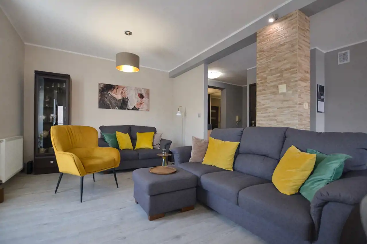 Mieszkanie zostało wykończone z dbałością o najmniejsze detale. Sąsiedztwo rzeki i spokojna okolica zapewni komfort mieszkańcom.