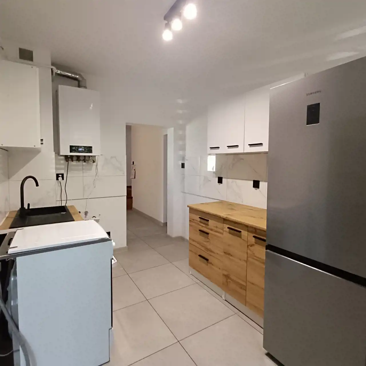 Meble kuchenne nowe. W kuchni zostaje lodówka. Jest możliwość podłączenia w kuchni indukcji i zmywarki.