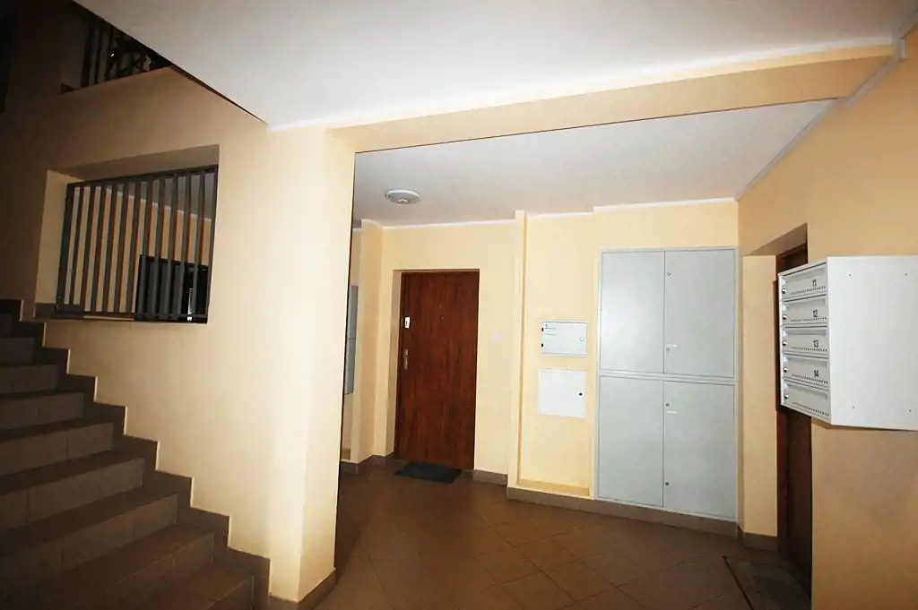 Z klatki schodowej prowadzi do dwóch mieszkań zamknięty korytarz, gdzie każdy z właścicieli posiada udział 50% w jego własności.
