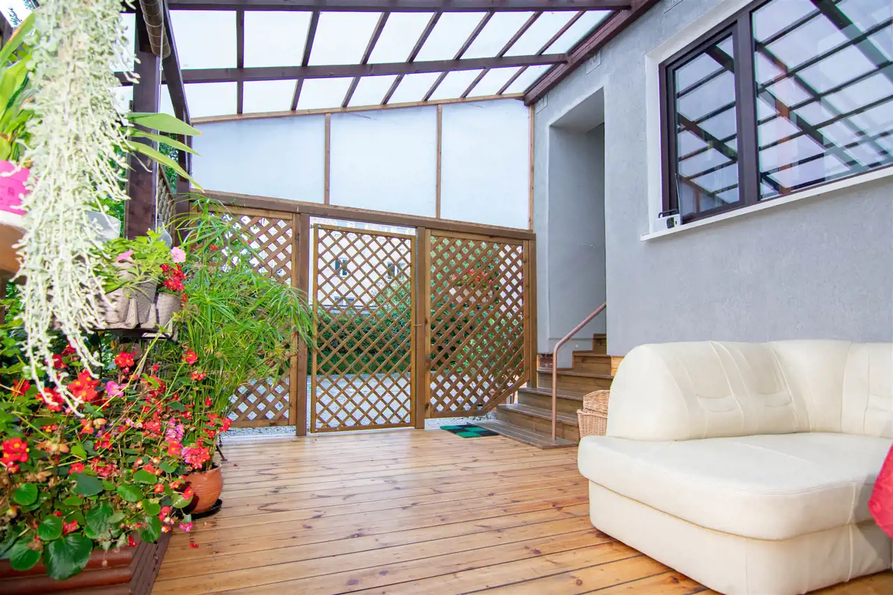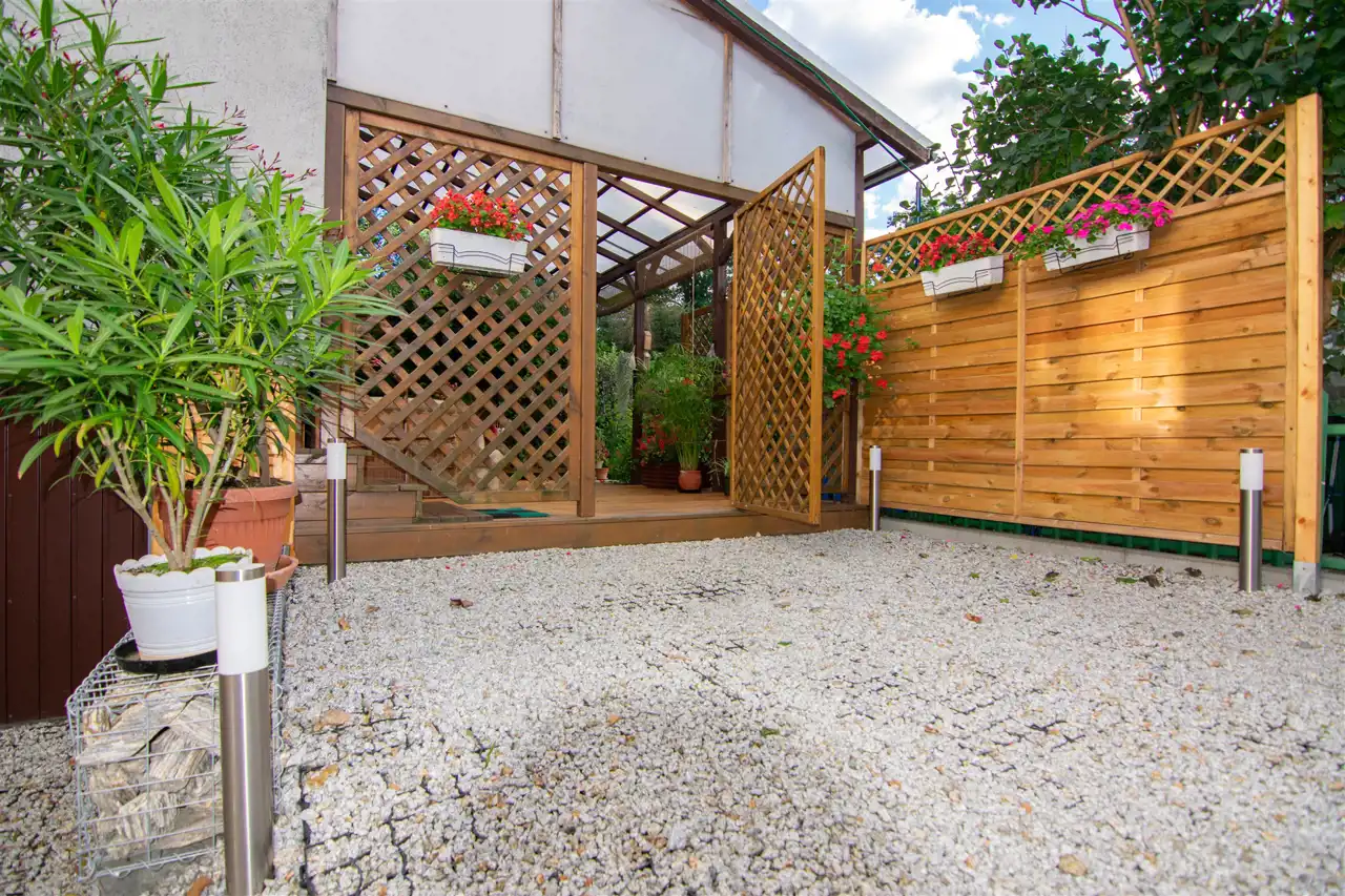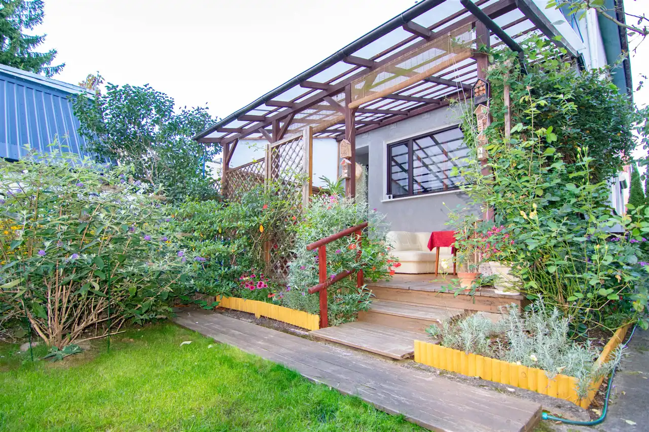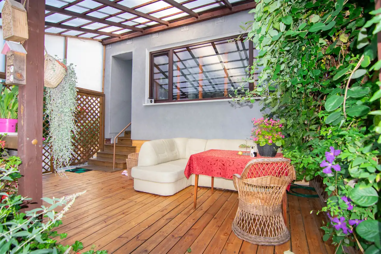 Zadaszony Taras o powierzchni 20 m² z bezpośrednim wyjściem do zagospodarowanego ogrodu o powierzchni 270 m² – idealne miejsce do relaksu i spotkań z bliskimi.